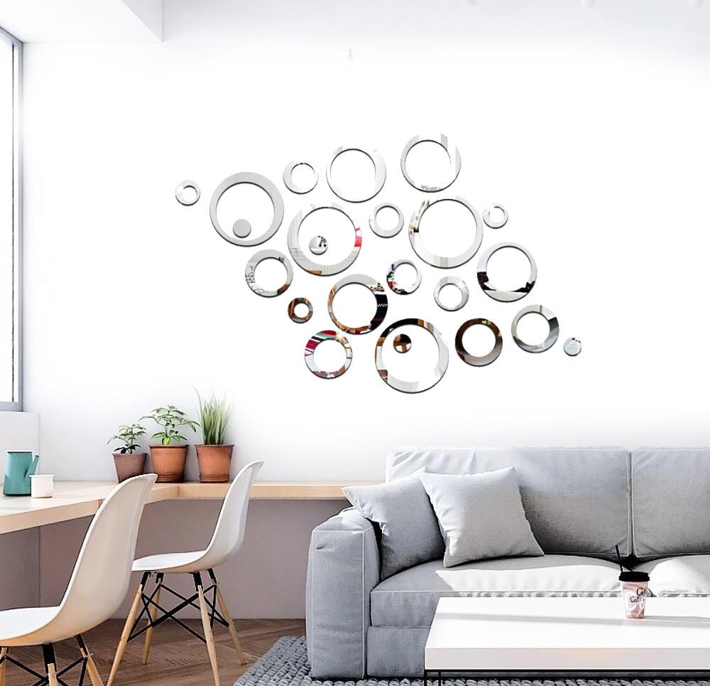 • Nálepky na zeď v podobě zrcadlových kruhů/koleček