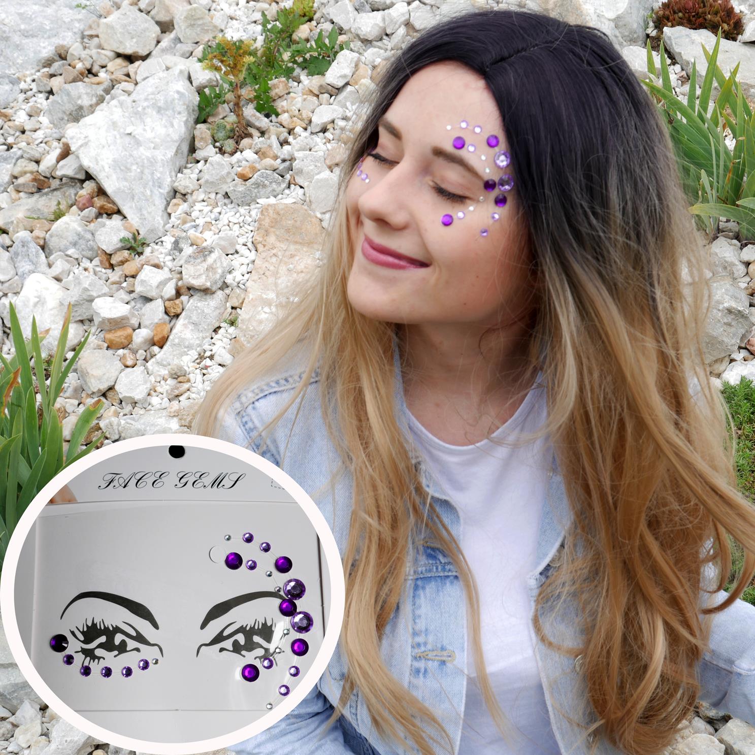 S těmito kamínky se doslova blýsknete! Doplňte svůj outfit nápadným doplňkem, který jistě zaujme. Kamínky můžete aplikovat na obličej na různé příležitosti jako jsou oslavy, párty, festivaly, rozlučky, ale i třeba na běžné nošení. Aplikace není nijak složitá nalepovací kamínky na obličej sejměte z ochranné fólie a na předem vyčištěný, nenalíčený a suchý obličej je nalepte.
