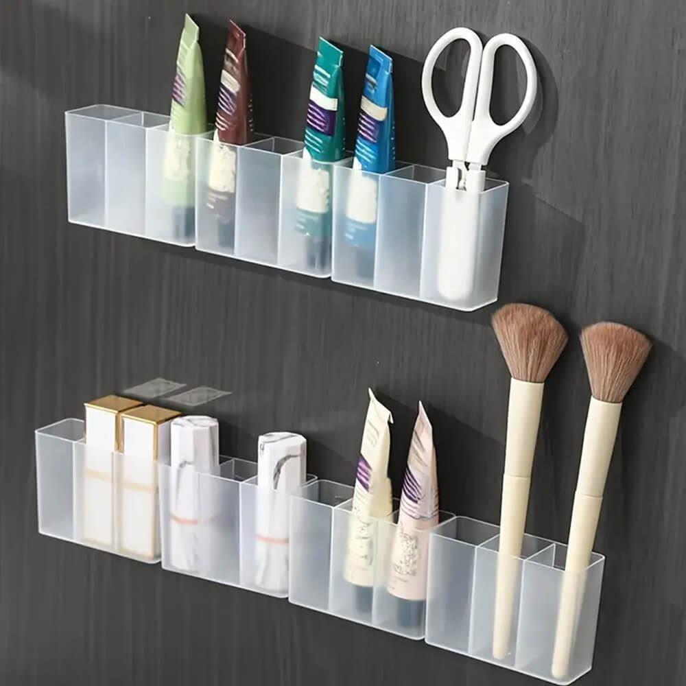 Průhledné nalepovací přihrádky upoutají zejména ženy. Téměř každá žena totiž uvítá mít své rtěnky a štětce hezky uspořádané a při líčení po ruce. Praktická trojpřihrádka poslouží na kosmetiku či kosmetické potřeby v podobě pinzet, rtěnek, štětců či vatových tyčinek.  Hodit se bude i na různé vlasové doplňky jako jsou gumičky či sponky. V neposlední řadě lze přihrádky nalepit i do kanceláře na psací potřeby.