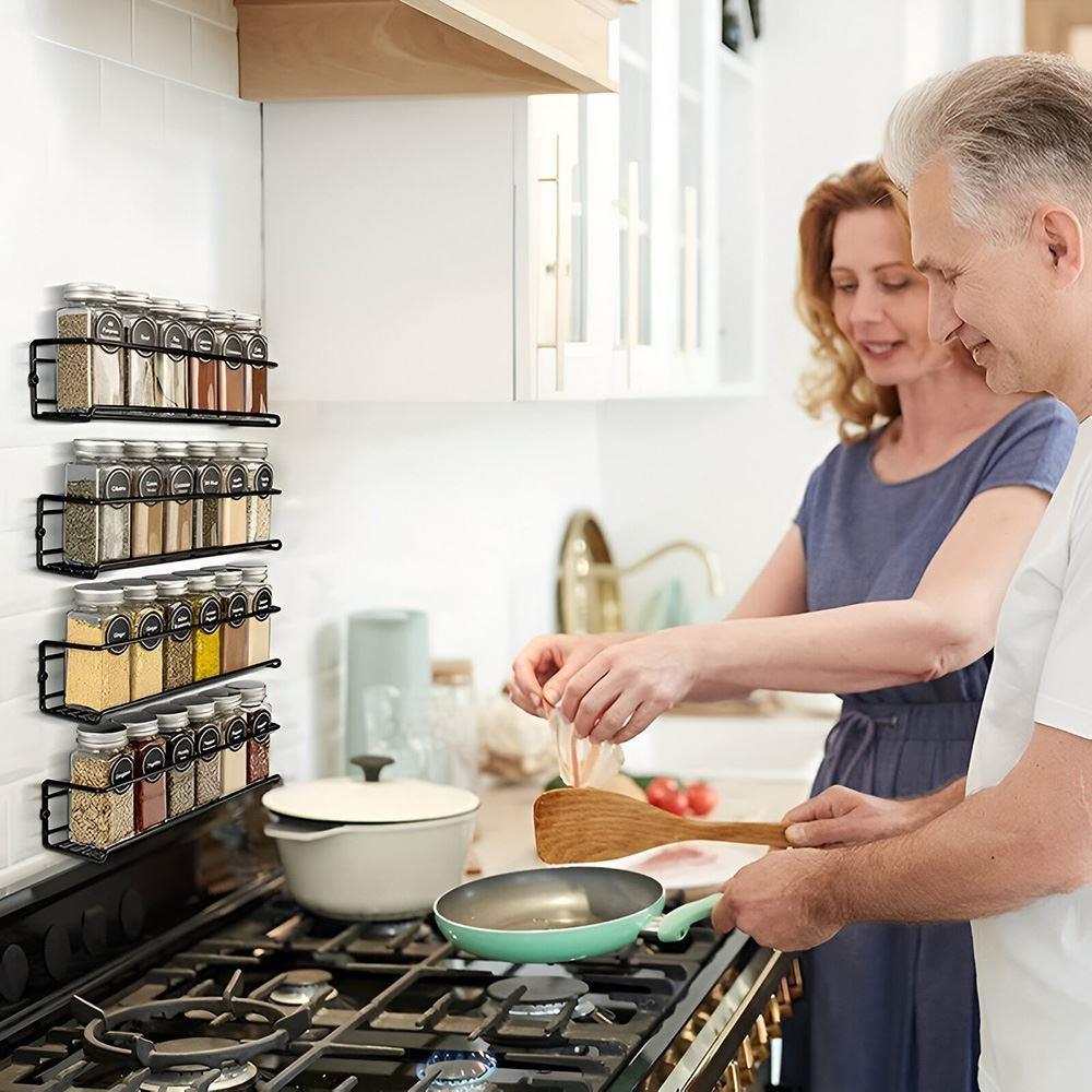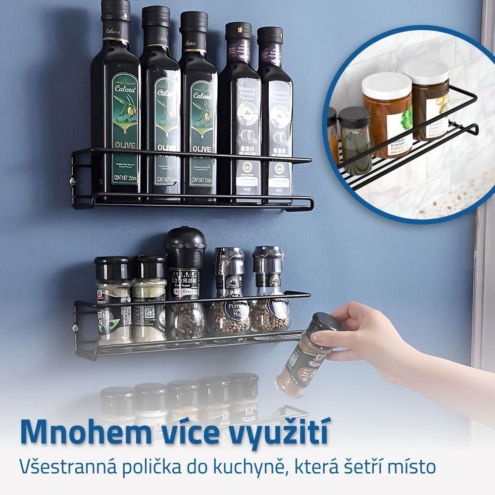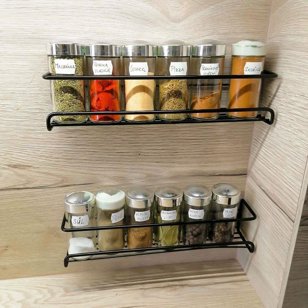 Jednoduchý a praktický design naší poličky zajišťuje, že vaše koření bude vždy po ruce. Snadno se přizpůsobí vašim potřebám díky možnosti buď pevného přivrtání nebo snazšího nalepení.