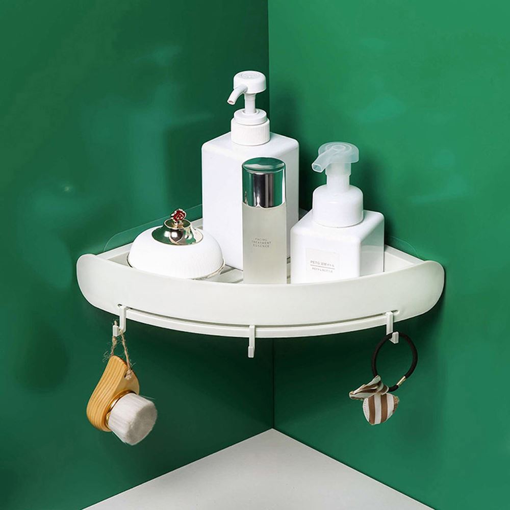 Nalepovací rohová polička plní funkci šikovného odkládacího prostoru na koupelnové a kuchyňské doplňky. Polička má posuvné háčky, na které lze zavěsit utěrky, žiletky či žínky. Jednoduše se nalepí do rohu sprchového koutu, koupelny či kuchyně.