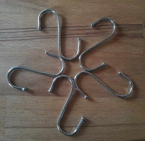 Klasika za par korun, male hacky vhodne na zaveseni veci na tenkou tyc nad linkou. Drzi hezky. U nas drzi malou litinovou panvicku a to je vaha.
