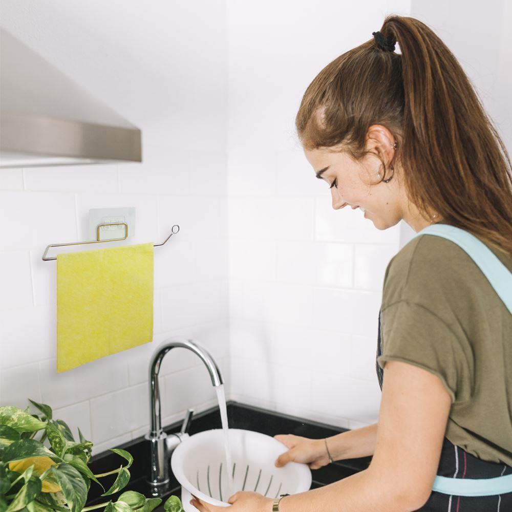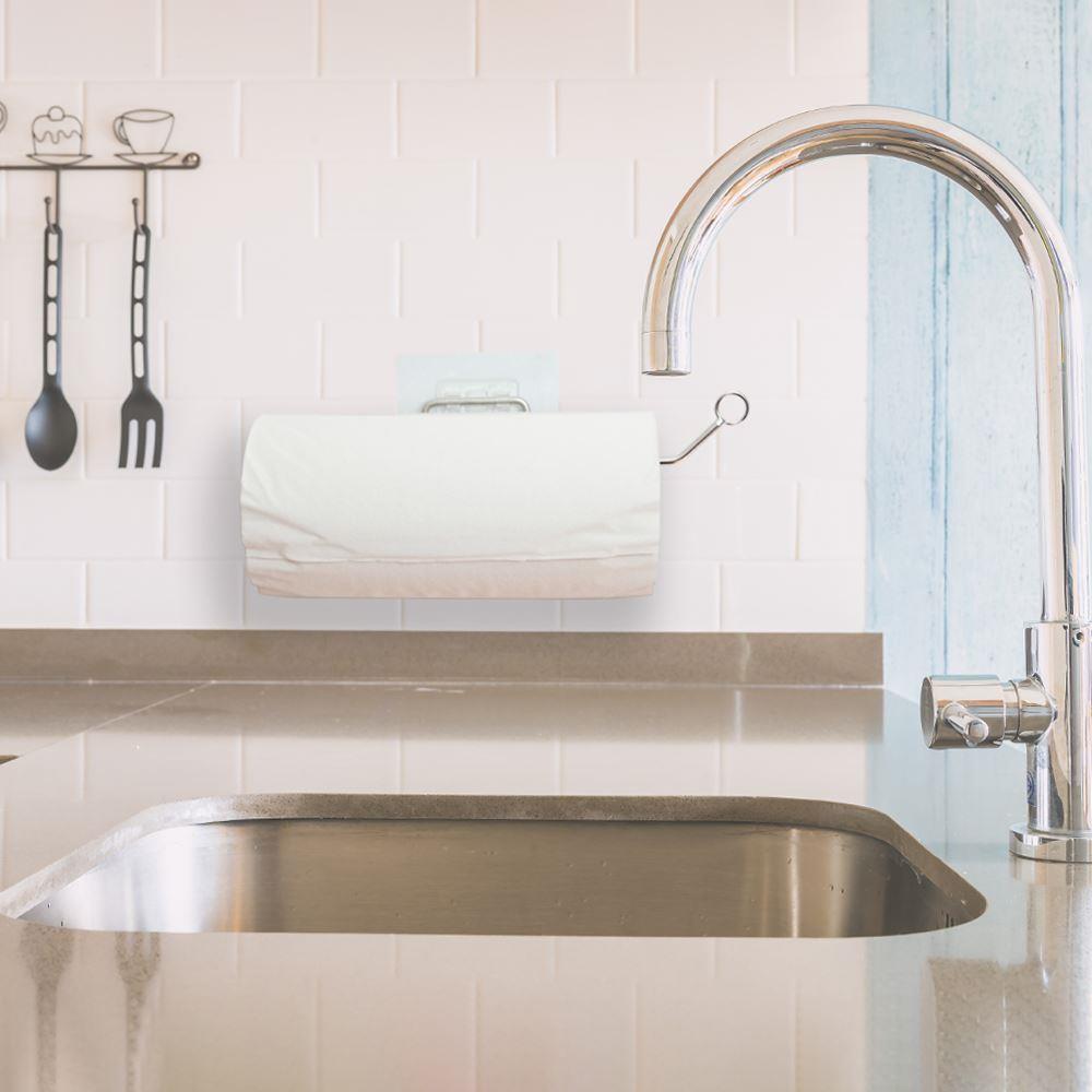 Praktický držák na utěrky se hodí do každé domácnosti. Díky samolepce ho jednoduše nalepíte kamkoliv jen potřebujete. Lze ho nalepit nad dřez a zavěsit na něj papírové, nebo látkové utěrky. Vyjímat se ale může i na záchodě jako držák toaletního papíru, nebo v komoře, kde přes něj můžete zavěsit hadry na podlahu.