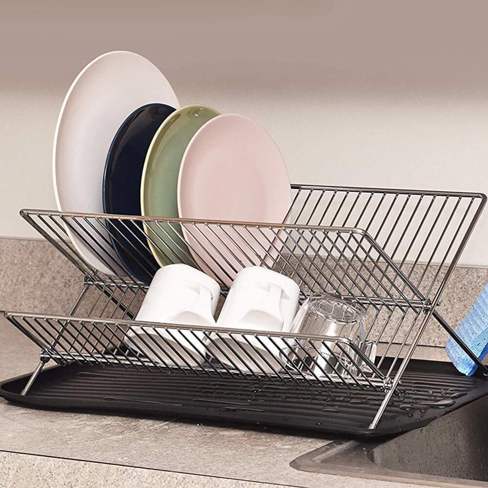 Mytí nádobí je každodenní činností, která spoustu z nás sice nebaví, ale je nutné ji vykonat, aby se nám ve dřezu nekupily hory talířů a hrnků a kuchyň zůstávala příjemným místem, kde se tvoří nejen skvělé chutě, ale i dobrá nálada. My pro vás máme alternativu v podobě tohoto nerezového odkapávače s plastový tácem, který je nejen skladný díky svému skládacímu designu, ale také praktičtější na údržbu, protože nerez přirozeně odpuzuje nečistoty, které na ní oproti plastu tolik neulpívají.