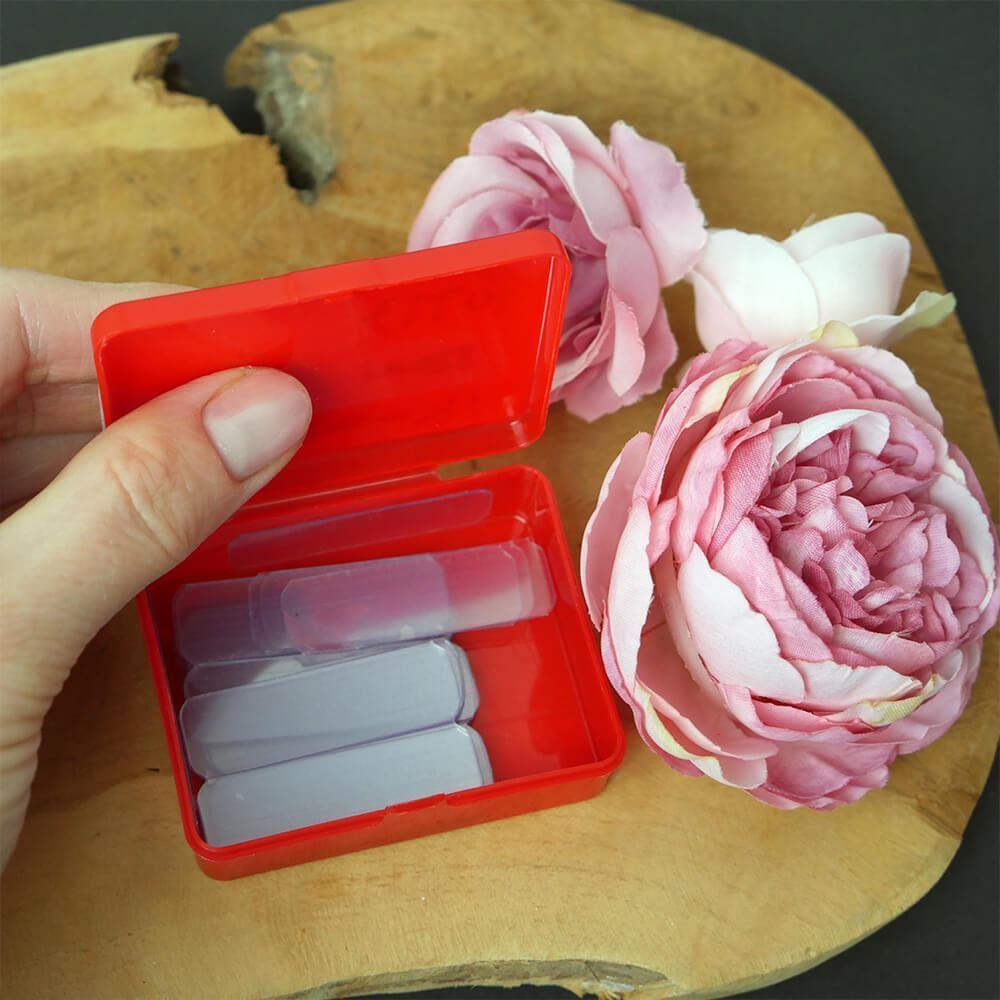 Pásky navíc dodáváme v praktické krabičce, a tak se vám nebudou nikde jen tak povalovat. V případě, že budete potřebovat ještě menší kousky, není problém si pásku podle potřeby nařezat či nastříhat.