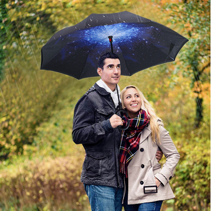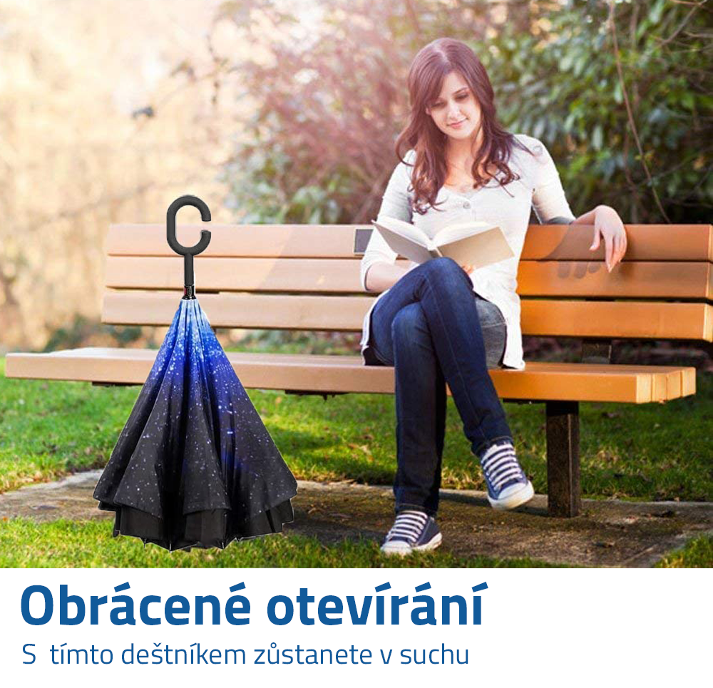 Asi největší plus je ten, že díky jeho obrácenému systému otevírání a zavírání, zůstává veškerá voda uvnitř, a vám tak nehrozí žádné pokapání vodou. Určitě znáte situaci, když jste mokrý deštník položili na sedačku v autě a promočily se vám důležité dokumenty. S tímto deštníkem se vám to již nestane!