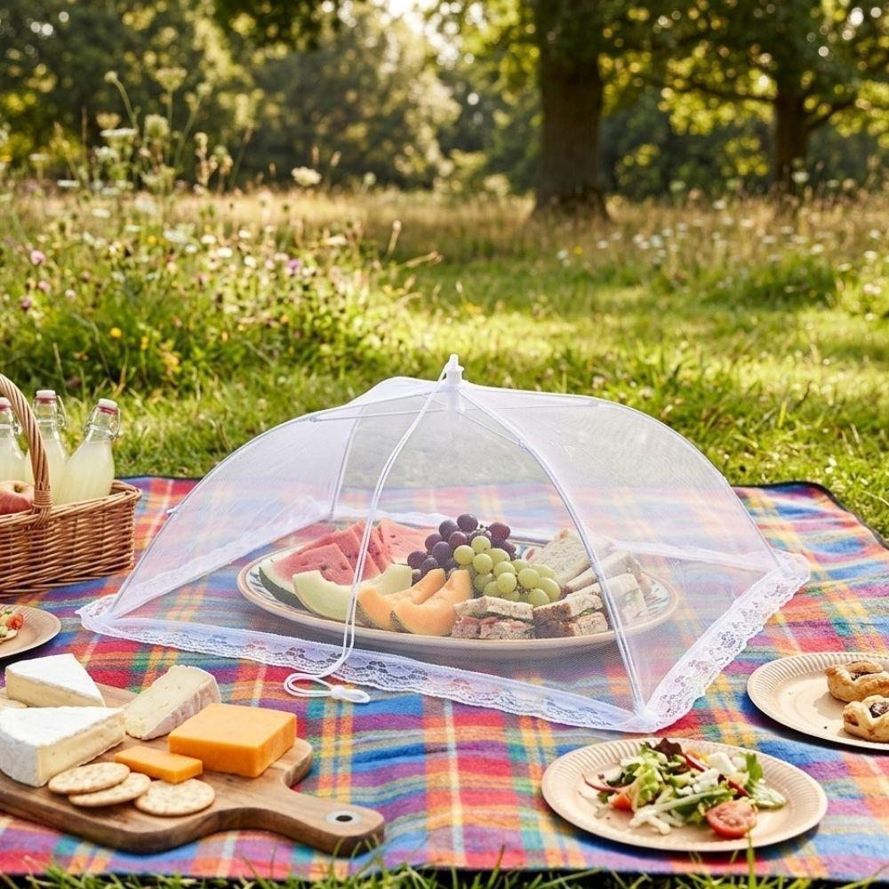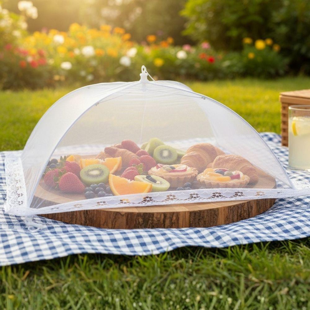 Ochranná síťka na potraviny je praktickým pomocníkem při stolování venku. Spolehlivě chrání jídlo před hmyzem i dalšími nečistotami, a přitom zachovává přehled o obsahu díky jemné síťovině. Stačí ji jednoduše rozložit a přikrýt připravené pokrmy.