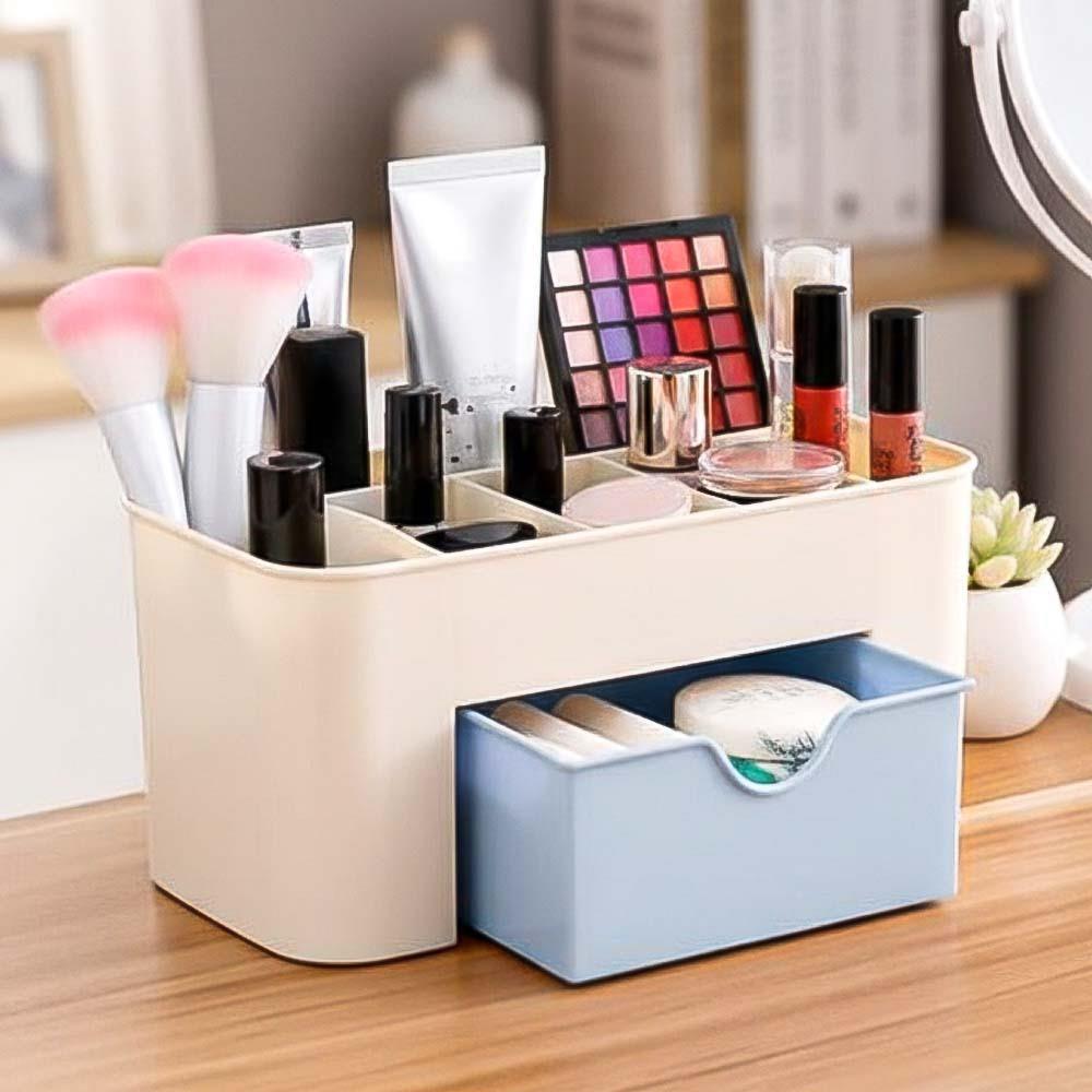 Kosmetických organizérů není nikdy dost! V tomto bude vaše kosmetika přehledně urovnaná a všechno bude mít svůj řád! Kosmetický organizér má několik různě velkých přihrádek. Jedna přihrádka je navíc vysouvací. Celkem má organizér 7 přihrádek. Doporučujeme využívat na kosmetické štětce, make-up, stíny, krémy nebo například řasenky.