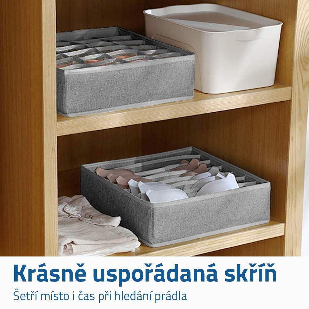Pořiďte si tento organizér spodního prádla, se kterým bude udržování pořádku v šatníku hračka. Jednoduše si jej dejte do šuplíku nebo na poličku, a naplňte věcmi. Díky tomu, že se dá navíc stohovat, ušetříte nejen čas strávený hledáním, ale i místo, které by vám věci jinak zabíraly. Zažijte ten pocit, kdy má vše vlastní místo, a věnujte se důležitějším věcem, než je věčné urovnávání.