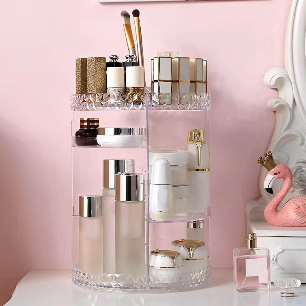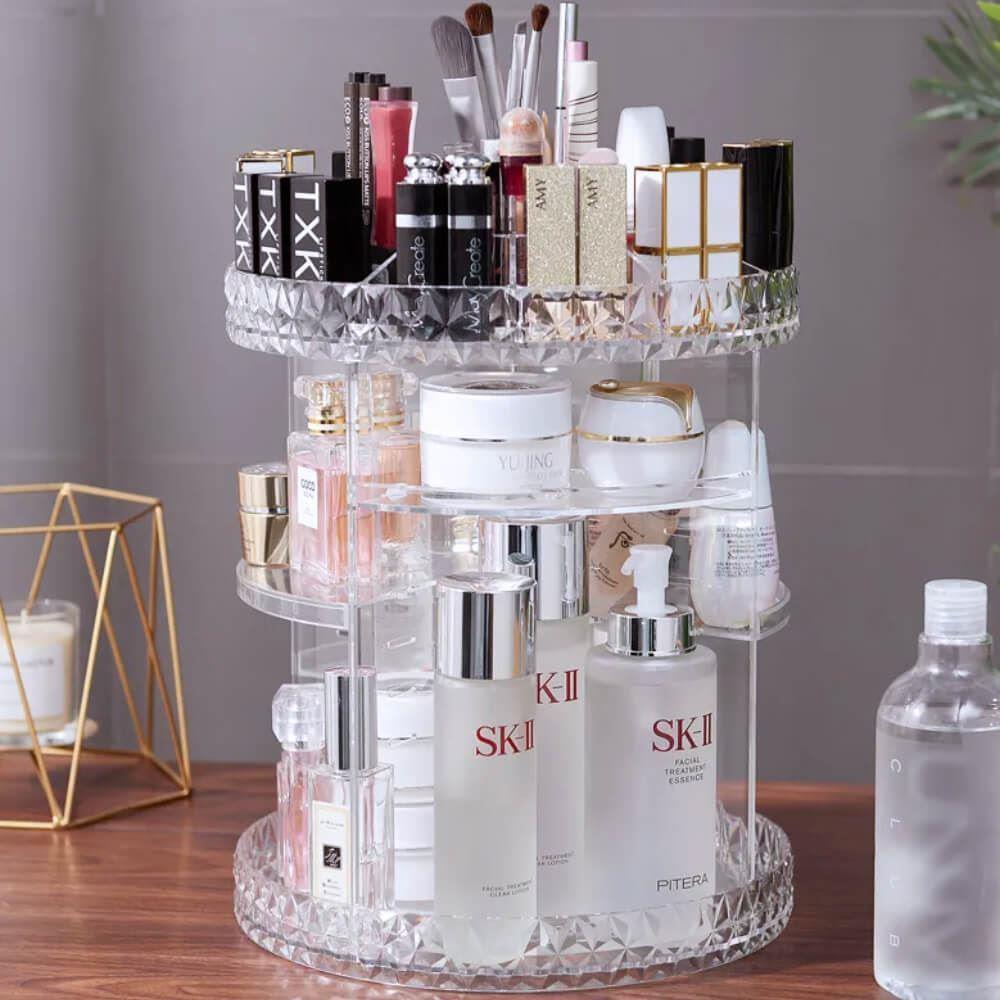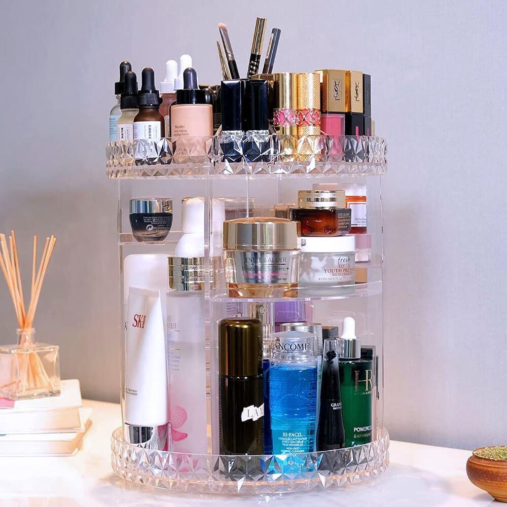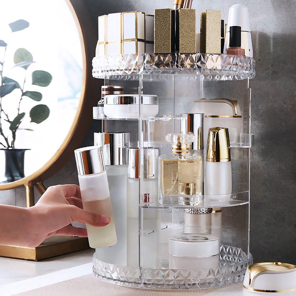 Tento otočný stojan na kosmetiku rázem promění každou poličku v koupelně nebo kosmetický stolek v místo, které doslova srší profesionálním organizací. Už žádné popadané a rozbité lahvičky, už žádné řeči, že toho máte doma příliš. Zatočte s nepořádkem a udělejte si místo třeba i na ten produkt, který si už nějakou dobu přejete pořídit – do stojanu se vejde.