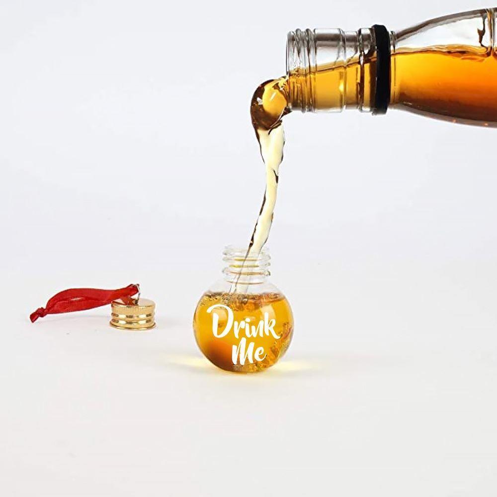Nemusíte se vydávat do světa divů, abyste mohli požít nápoj ukrytý v tajemné lahvičce. Nejlepší na tom je, že si sami zvolíte, jaký bude její obsah. Baňka s nápisem „Vypij mě!“. Veselá dekorace k zavěšení na vánoční stromek či jako vtipná forma přípitku na slavnosti tabuli. Hodí se také jako dekorace na tematické party.