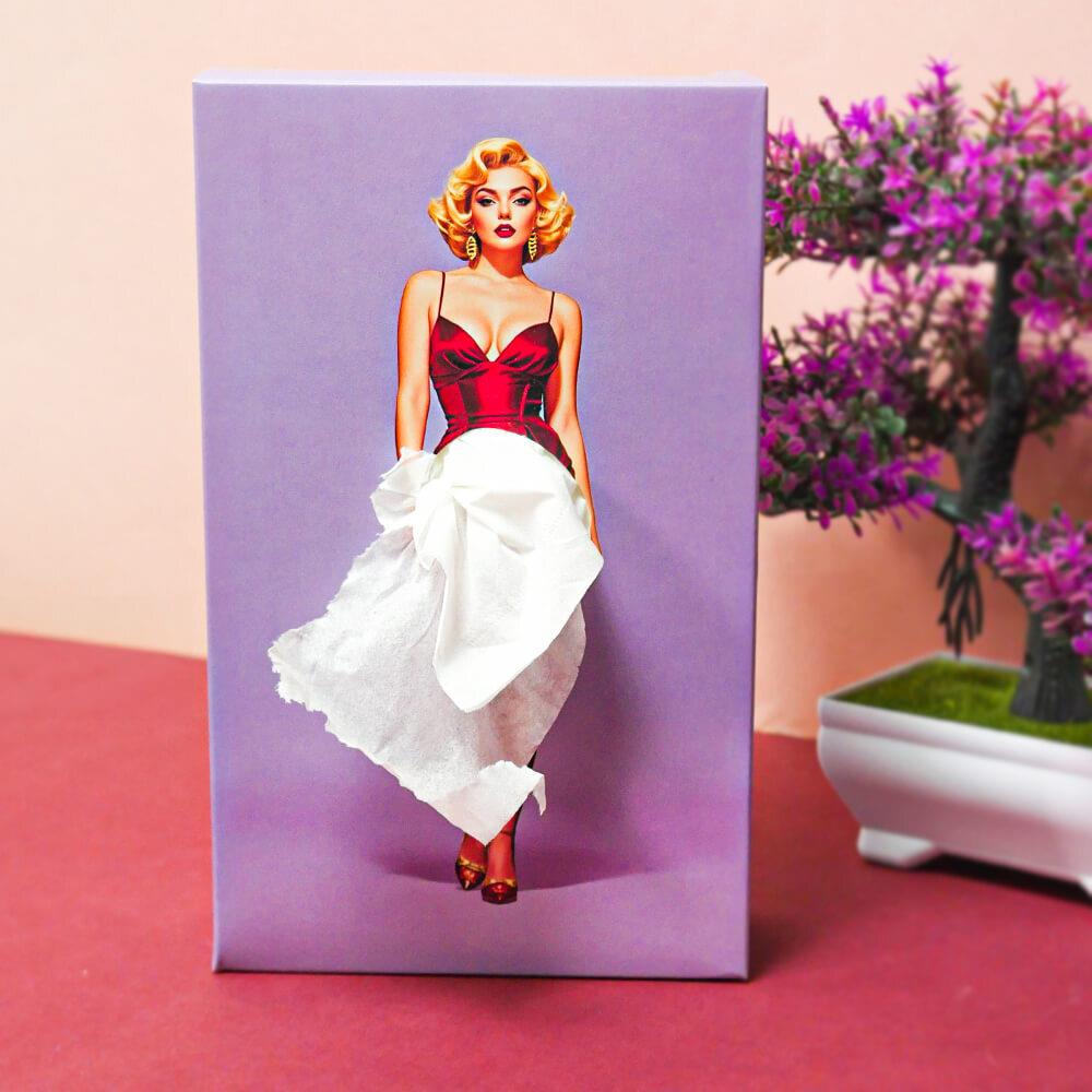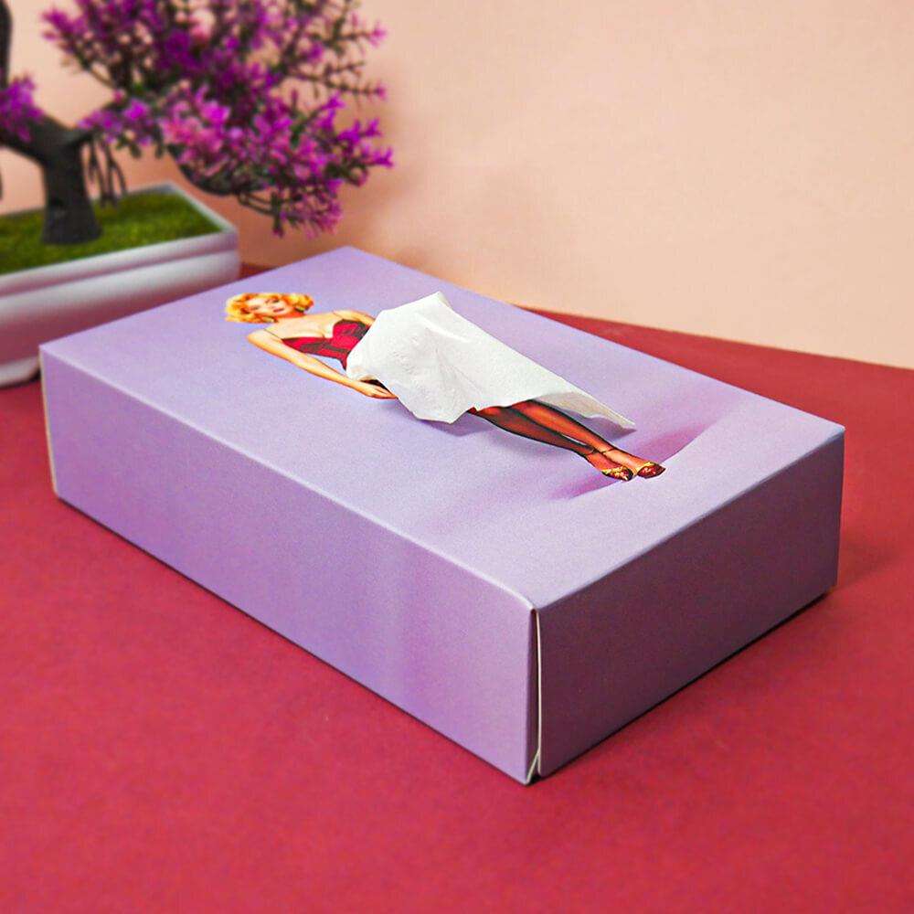 I obyčejné kapesníky mohou mít kapku elegance. Krabička s motivem dámy v krásných šatech promění praktický doplněk v ozdobu každého interiéru.