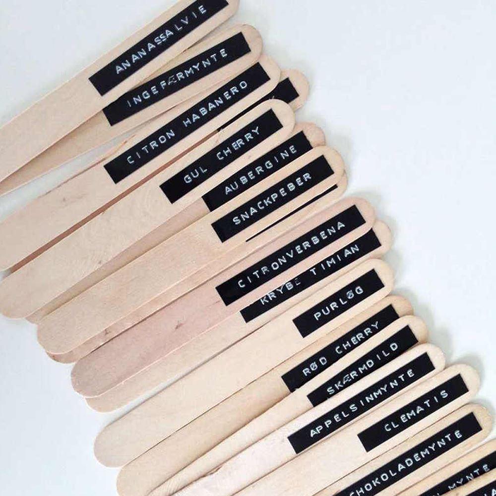Vytvořte stylové 3D popisky na dózy, sešity, sklenice, deníky, krabice či schránky. Vyrobíte i různé zápichy do květináčů či dortů. Samolepící štítky vzinkou lehce pomocí mechanického štítkovače a pásky.