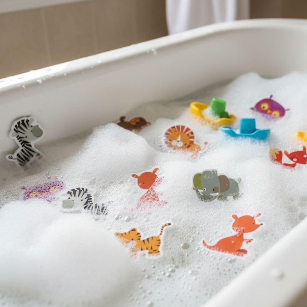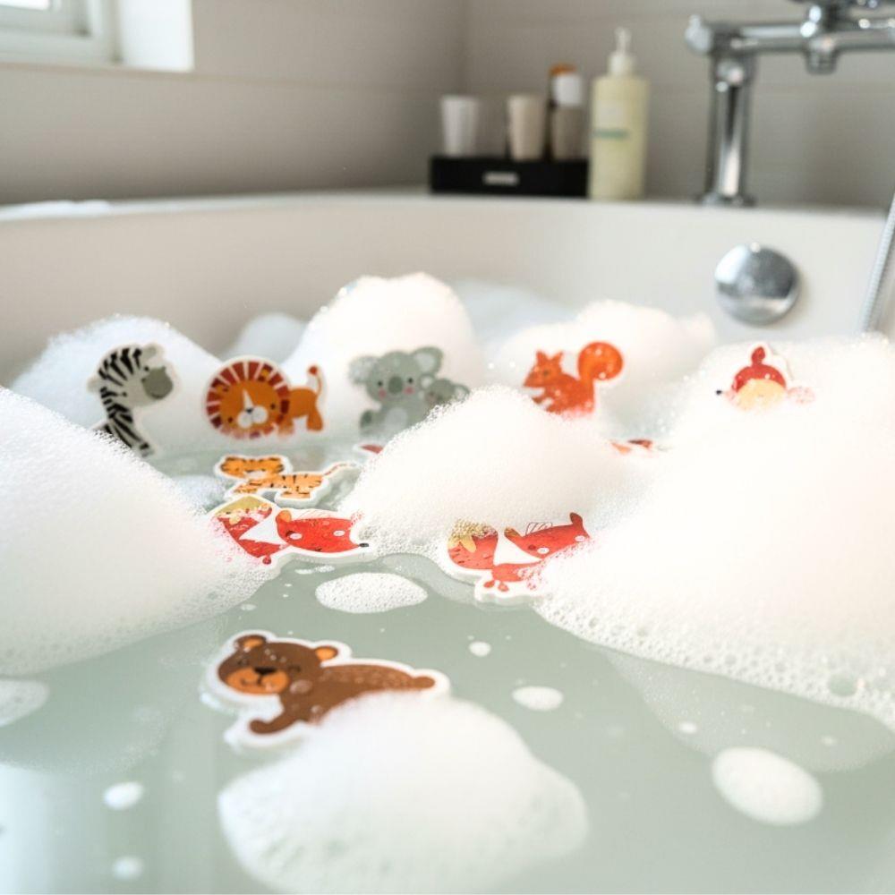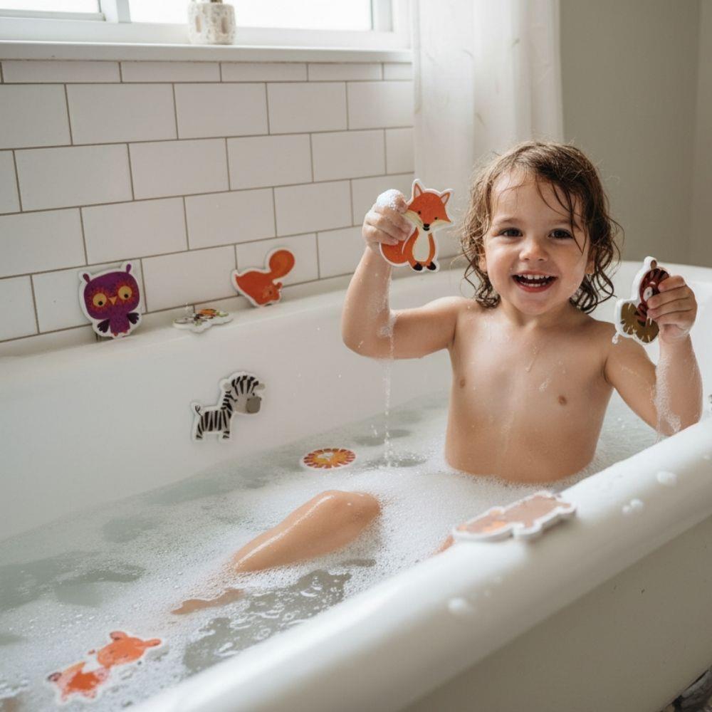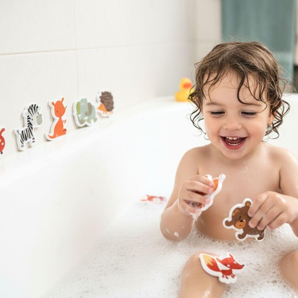 Po namočení zvířátka přilnou na hladké povrchy, jako jsou obklady nebo sklo, takže si děti mohou vytvářet vlastní příběhy přímo ve vaně. Hračka podporuje fantazii, jemnou motoriku i pozitivní vztah ke koupání, které se tak stane oblíbenou součástí dne.