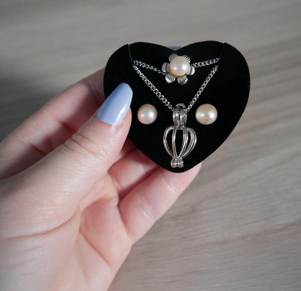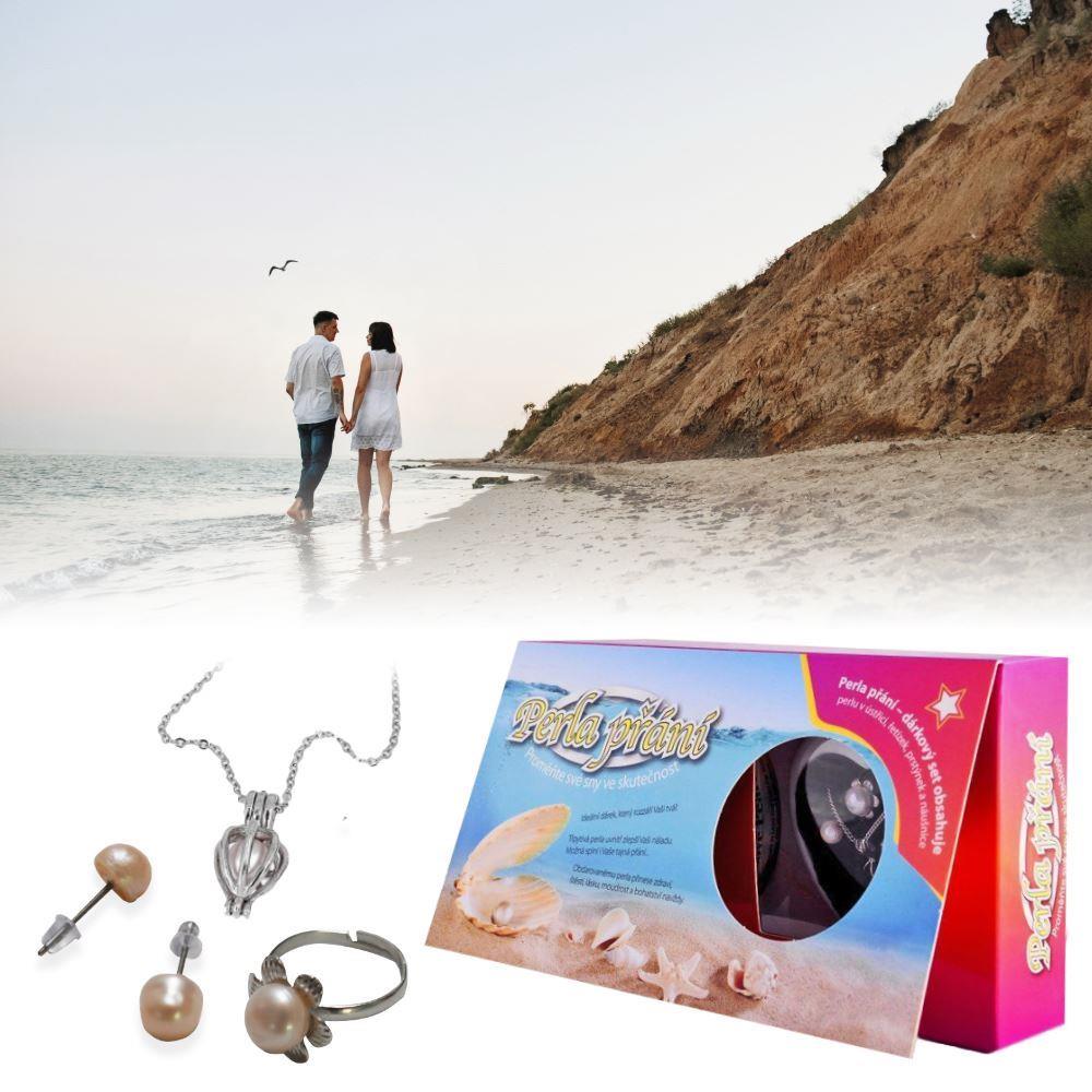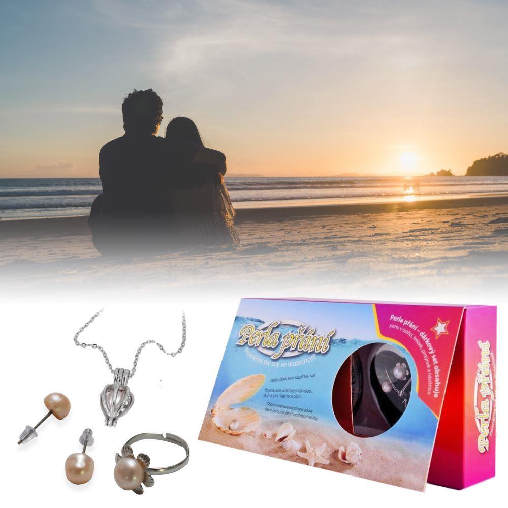 Perla přání v perlorodce s náhrdelníkem, náušnicemi a prstýnkem
