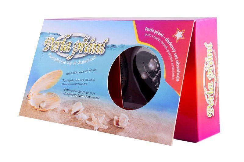 A co je tou největší zajímavostí? Uvnitř balení se nachází lasturka ústřice a v ní barevná perla přání. Žena si sama perlu vyřízne a vloží do přívěšku. Získá tak velice originální šperk, který může neustále nosit. K tomu jsou v balení ještě navíc překrásné náušnice a prstýnek. Celá sada je nádherně designově navržená a šperky k sobě ladí. Perla přání v sobě ukrývá další tajemství, jelikož nikdy nevíte, v jaké barvě bude a přitom každá barva něco znamená. Perla vznikla ze zrnka písku a dorostla do velikosti 5–8 mm.