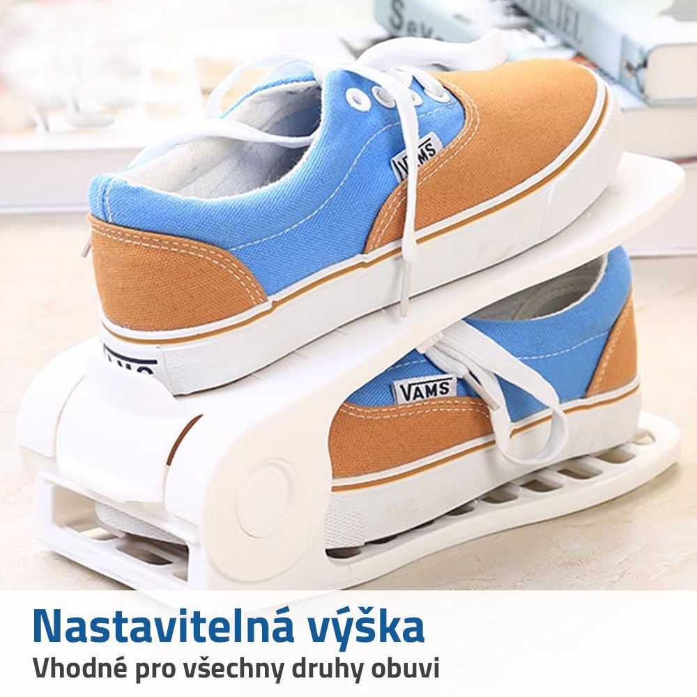 Už žádné nervy a ztráta času při hledání bot! Organizér navíc ušetří místo až o polovinu! Jednu botu vložte do spodní části a tu druhou na horní část. Nemusíte mít obavy, horní díl je opatřený kvalitní protiskluzovou vrstvou, díky níž bota nesklouzne. Výška organizéru je nastavitelná, proto je vhodný jak pro lodičky, pantofle, tak také plnou botu.