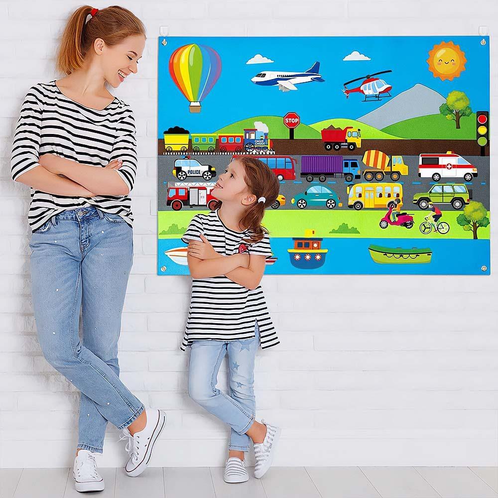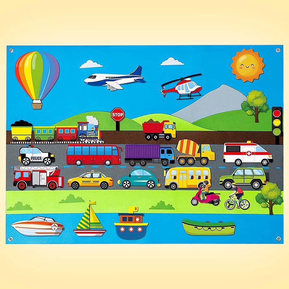 Plstěná výuková deska pro děti - dopravní prostředky