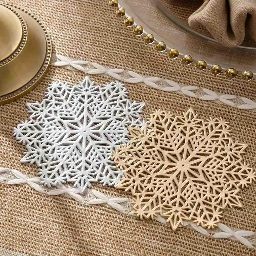 Tento podtácek, který vypadá jako sněhová vločka, je skvělou dekorací nejen vánoční tabule. Je vyrobený z PVC, takže oproti podtáckům z jiných materiálů drží svůj tvar a také sám od sebe neklouže po stole. Hodí se jak do vánočně vyzdobených prostor, tak i do těch, kde se preferuje minimalismus, jelikož je motiv vločky velmi jemný a neruší.