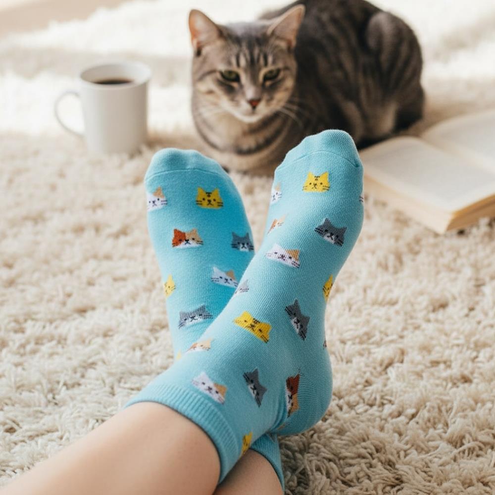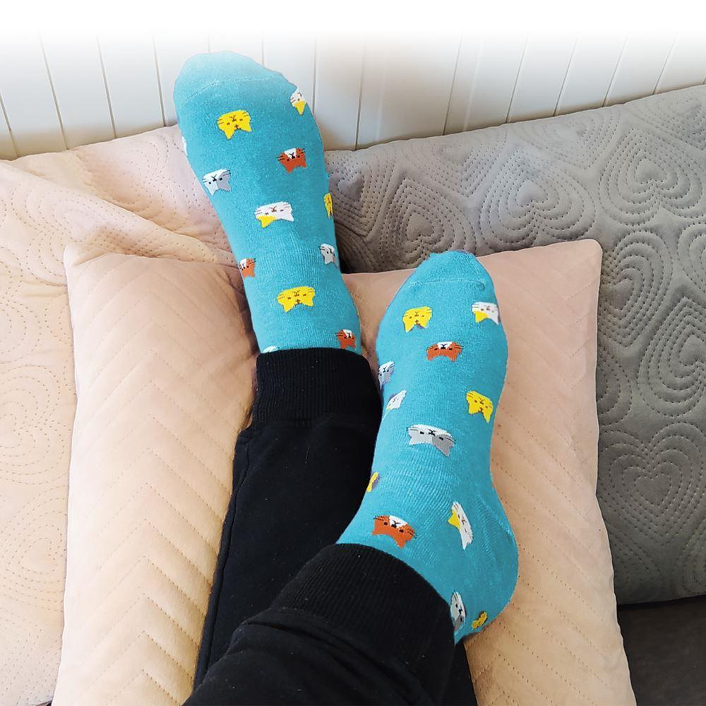 Hřejivé ponožky s nápadem. Ponožky s kočičkami nadchnou každého milovníka koček. Originální vzhled jistě každého zaujme. Veselé ponožky zahřejí a zároveň udělají parádu. Kvalitní provedení a příjemný materiál zaručí, že se vám budou ponožky skvěle nosit.