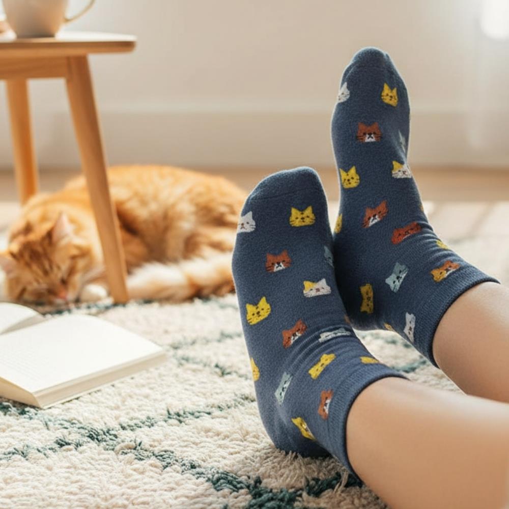 Hřejivé ponožky s nápadem. Ponožky s kočičkami nadchnou každého milovníka koček. Originální vzhled jistě každého zaujme. Veselé ponožky zahřejí a zároveň udělají parádu. Kvalitní provedení a příjemný materiál zaručí, že se vám budou ponožky skvěle nosit.