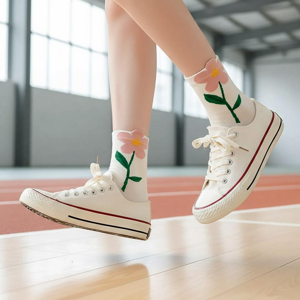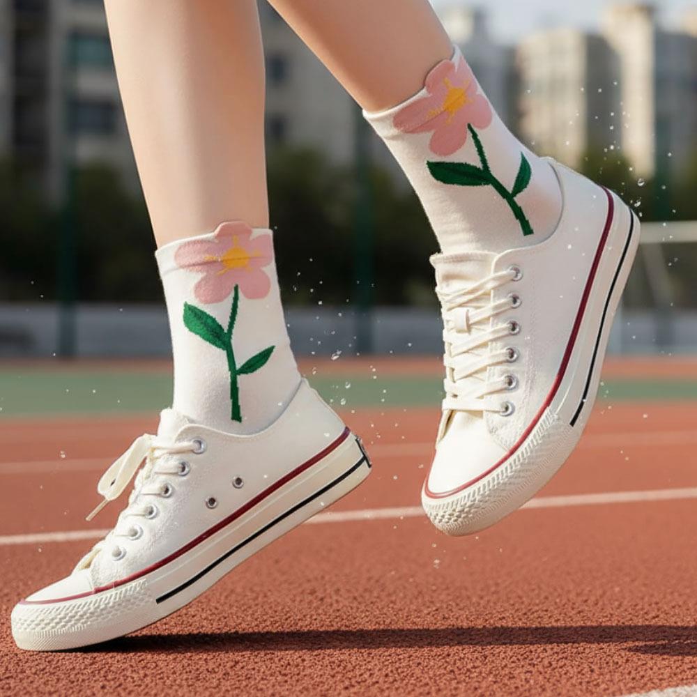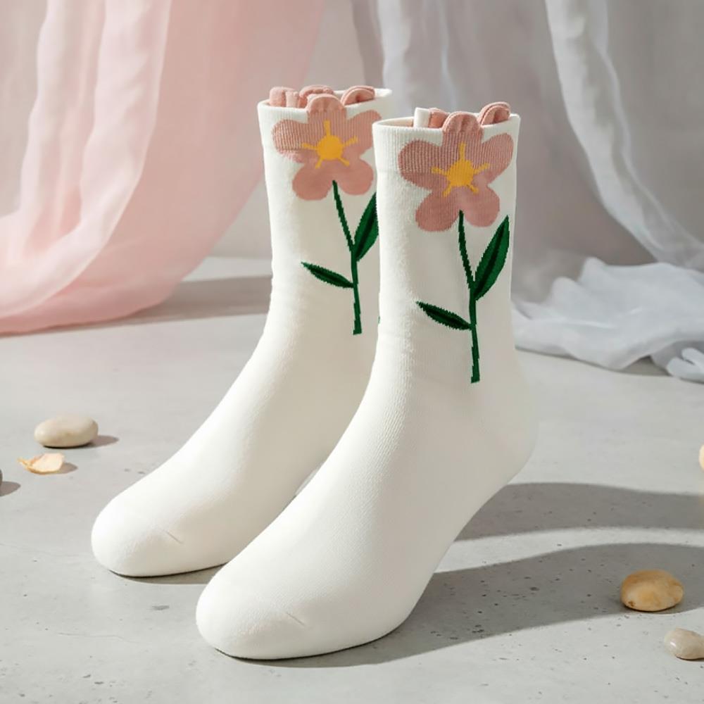 Nechte své nožky rozkvést s našimi kotníčkovými ponožkami s květy! Ponožky vynikají právě čistým moderním designem, který je tvořen pouze krémovou podkladovou barvou a jednoduchým vzorem květiny, která lehce vystupuje přes lem ponožky. Tento designový prvek je sice zdánlivě nenápadný, ale můžete se spolehnout, že pozornost okolí tím přitáhnete.