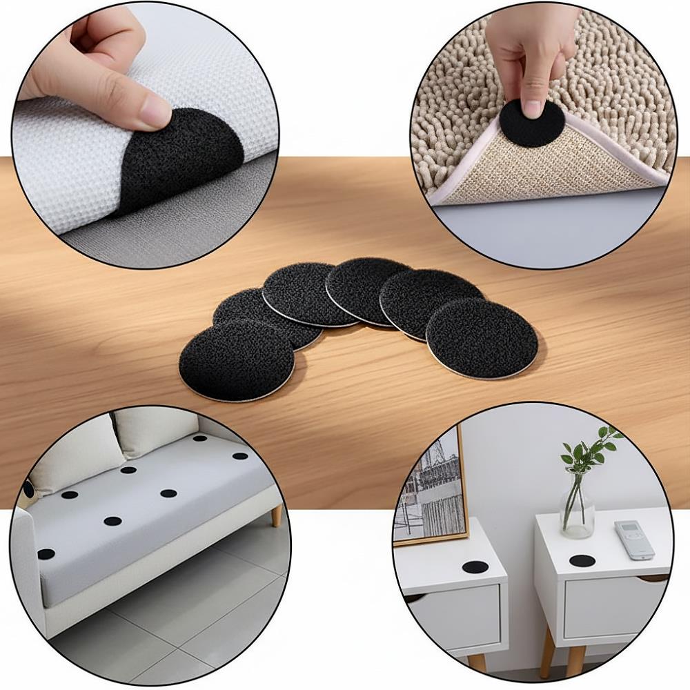 Protiskluzové podložky jsou z jedné strany samolepící - snadno je tak přichytíte k pohovce, koberečku a jiné textilii. Podklad pro lepení by měl být suchý, čistý a s hladkým povrchem. Druhá strana podložky je vybavena suchým zipem. Pak už stačí jen podložky přitisknout suchým zipem k sobě a voila - rázem máte o starost méně! Přehoz zůstane krásně narovnaný na pohovce a vy se můžete radovat z uklizeného domova.