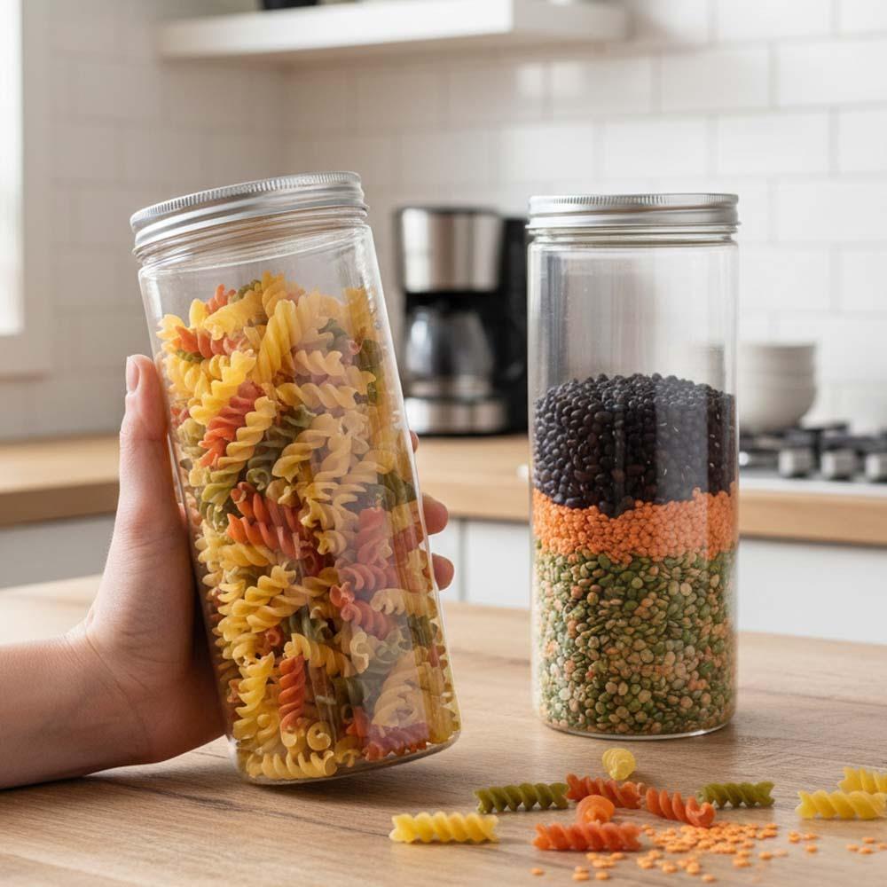 Je ideální pro skladování široké škály potravin – od suchých surovin, jako jsou těstoviny, ořechy nebo rýže, až po drobné pamlsky či koření. Díky své lehkosti je snadno přenositelná, a přitom dostatečně odolná, aby vydržela každodenní používání.
