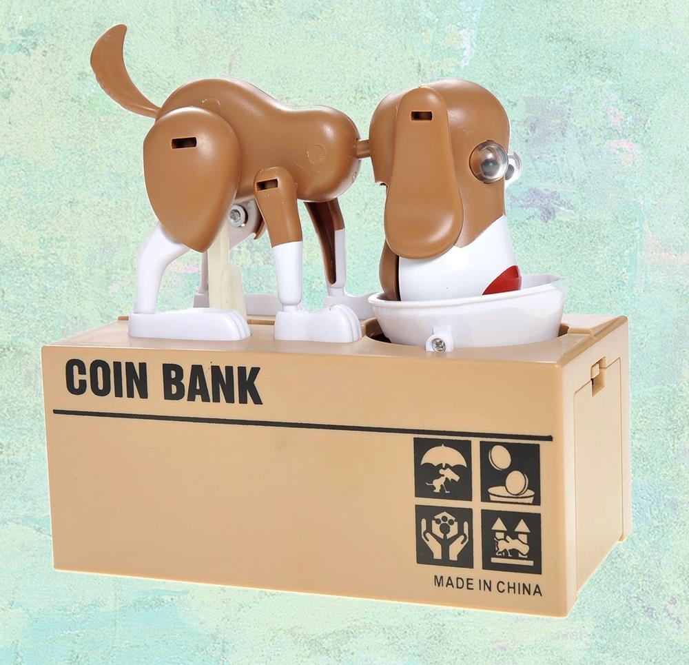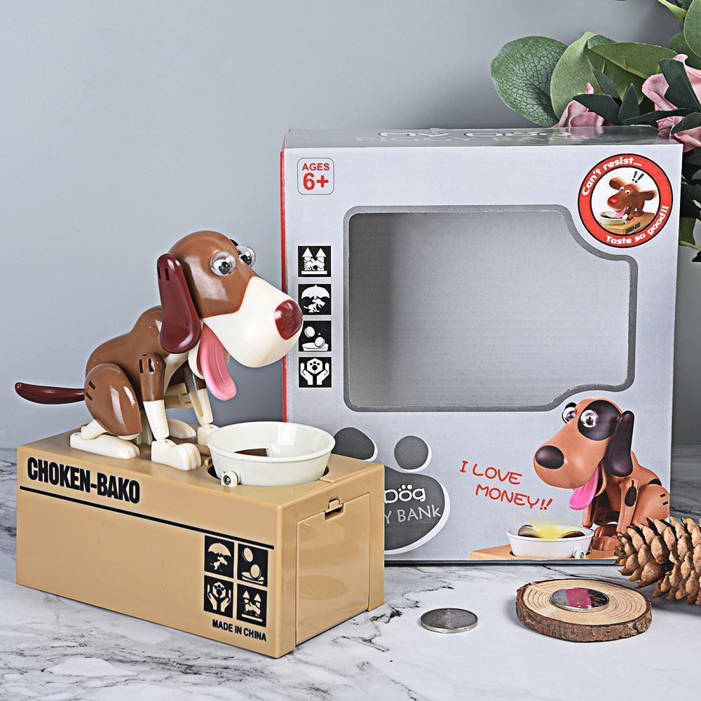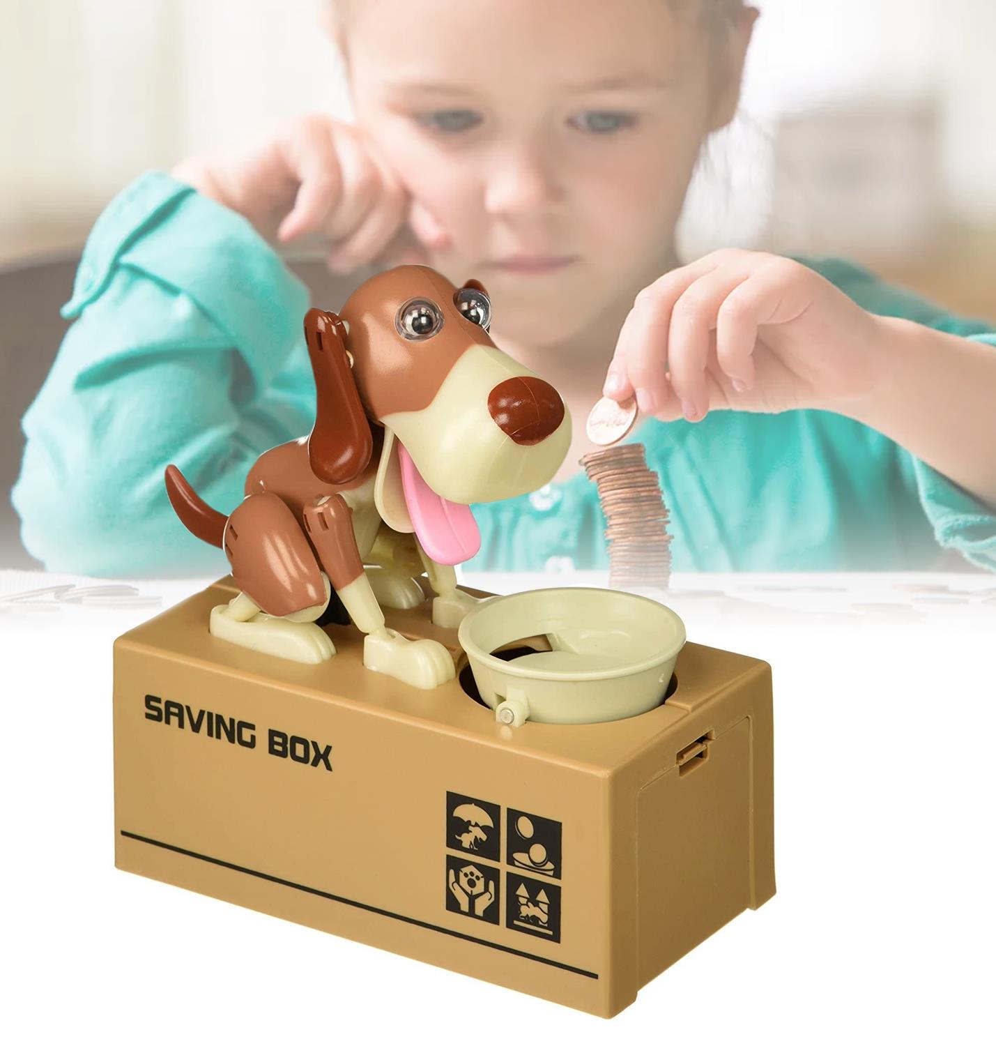 Roztomilá pokladnička v podobě nenasytného pejska. U dětí naprosto zaboduje! Pejsek má pořád hlad, ale jestli si myslíte, že byste u něj uspěli s granulemi, tak ani nápad! Pokud nevěříte, stačí vložit minci do psí misky a můžete se přesvědčit sami. Pejsek v okamžení obživne a vloženou minci spolkne dřív, než se nadějete. A co se mincemi vlastně stane potom? Napoví vám dvířka umístěná v přední části pokladničky.
