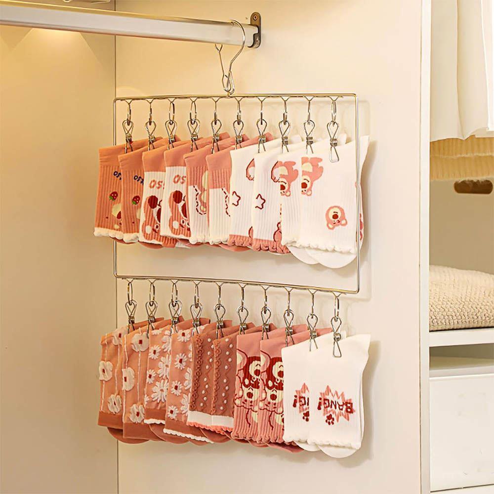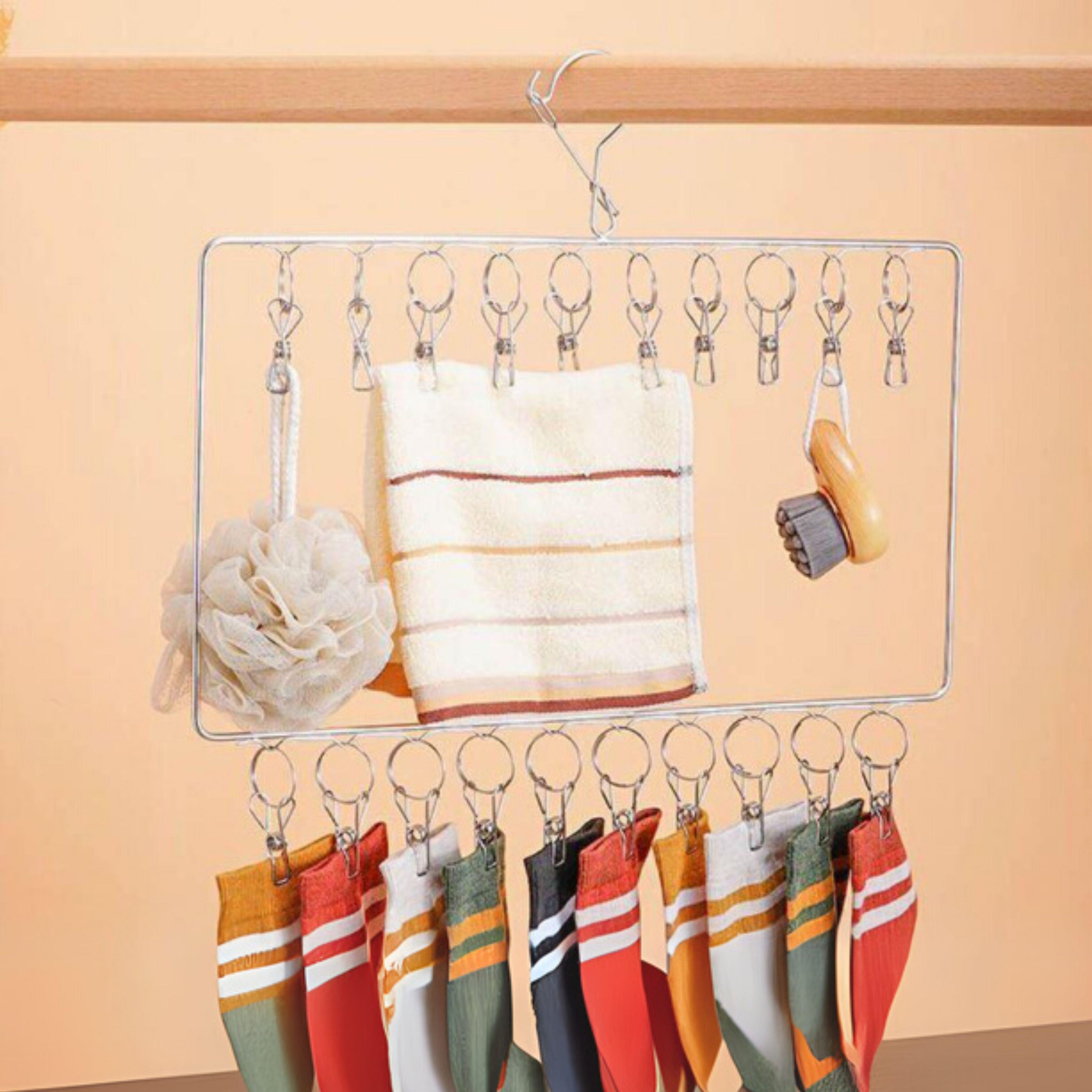 Milovníci pořádku a všemožných organizérů v domácnosti, zpozorněte! Jistě víte, že urovnaná skříň je základem každodenního oblékání. Tudíž se v rámci úschovy vyplatí, když má vše své místo, lépe řečeno přihrádku či ramínko – a právě jedno takové speciální pro vás máme. Toto jednoduché, a přesto naprosto skvělé ramínko se skládá ze dvou řad klipů, na něž můžete zavěsit nejen ponožky, ale i jiné drobné prádlo, či kupříkladu kravaty. Ušetříte prostor v šuplíku a také chaos, který může nastat, když hledáte jeden specifický kousek a mírně nestíháte. Můžete jej však využít i k sušení prádla, když zrovna nemáte příliš prostoru na sušáku nebo šňůře.