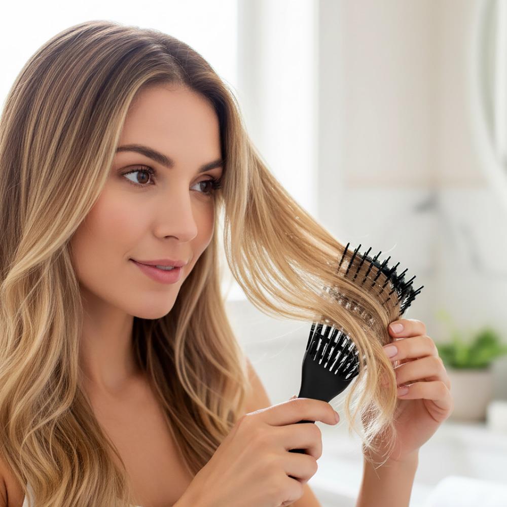 Rozpětí kartáče lze upravovat. Můžete si ho přizpůsobit dle vaší potřeby. Hustotu zoubků lze nastavit umístěním příčky v horní či dolní části hřebene. Kartáč na vlasy si dokonale poradí se zacuchanými vlasy.