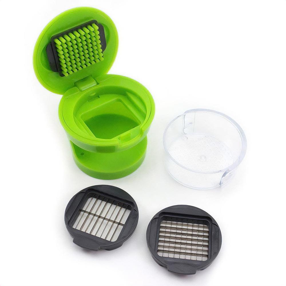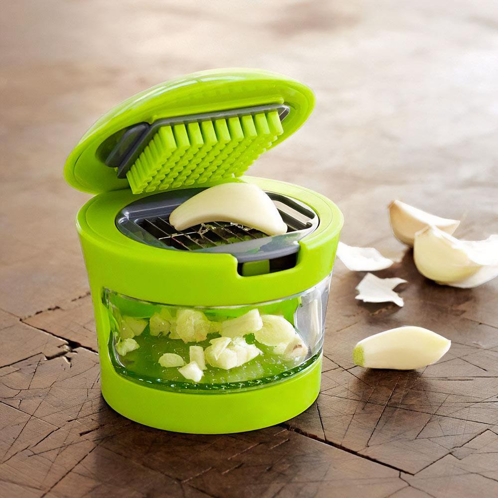 Z této práce totiž vzejdete s čistou rukou, a navíc provedení je naprosto jednoduché! Stačí vložit jeden z nástavců do vyhrazeného víčka a na to položit oloupané stroužky česneku. Poté přimáčkněte víčko a do plastové nádobky vám odpadnou buď kostičky či plátky česneku! Jak jednoduché, a jak efektivní!