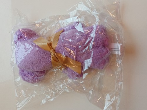 Ručník na obličej - fialový medvídek s mašlí