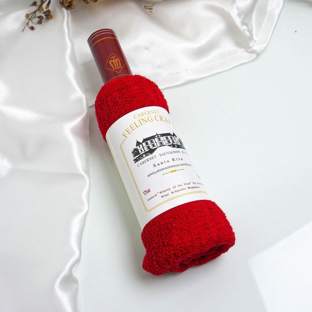 Znáte někoho, kdo je milovníkem vína? Proč takového člověka nepotěšit vtipným dárkem a to ručníkem, který je naaranžovaný jako láhev vína. Materiál je velmi příjemný na dotek. Využijete ho v každé domácnosti jako ručník na ruce.