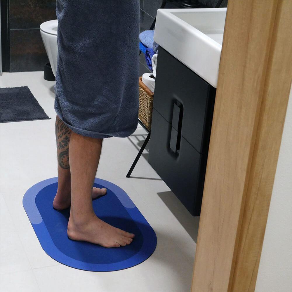 Tato protiskluzová podložka bude nepostradatelný doplněk ve vaší koupelně. Má skvělé absorpční vlastnosti, díky kterým dokonale pohlcuje vodu a vy se tak vyhnete zdlouhavému vysoušení. Podložka je vyrobená z pružného materiálu, lze ji snadno stočit nebo vyklepat. Další předností je protiskluzová textura ze spodu podložky. Tato textura zajišťuje přilnavost k zemi a podložka se tak ani nehne. To oceníte především při vystupování ze sprchového koutu nebo vylézání z vany. S touto podložkou už se nemusíte bát, že vám to podklouzne. Podložka má příjemné odstíny modré barvy a vaší koupelnu rozzáří. Lze jí používat nejen v koupelně nebo na WC, ale také jako podložku pod psí či kočičí misku.