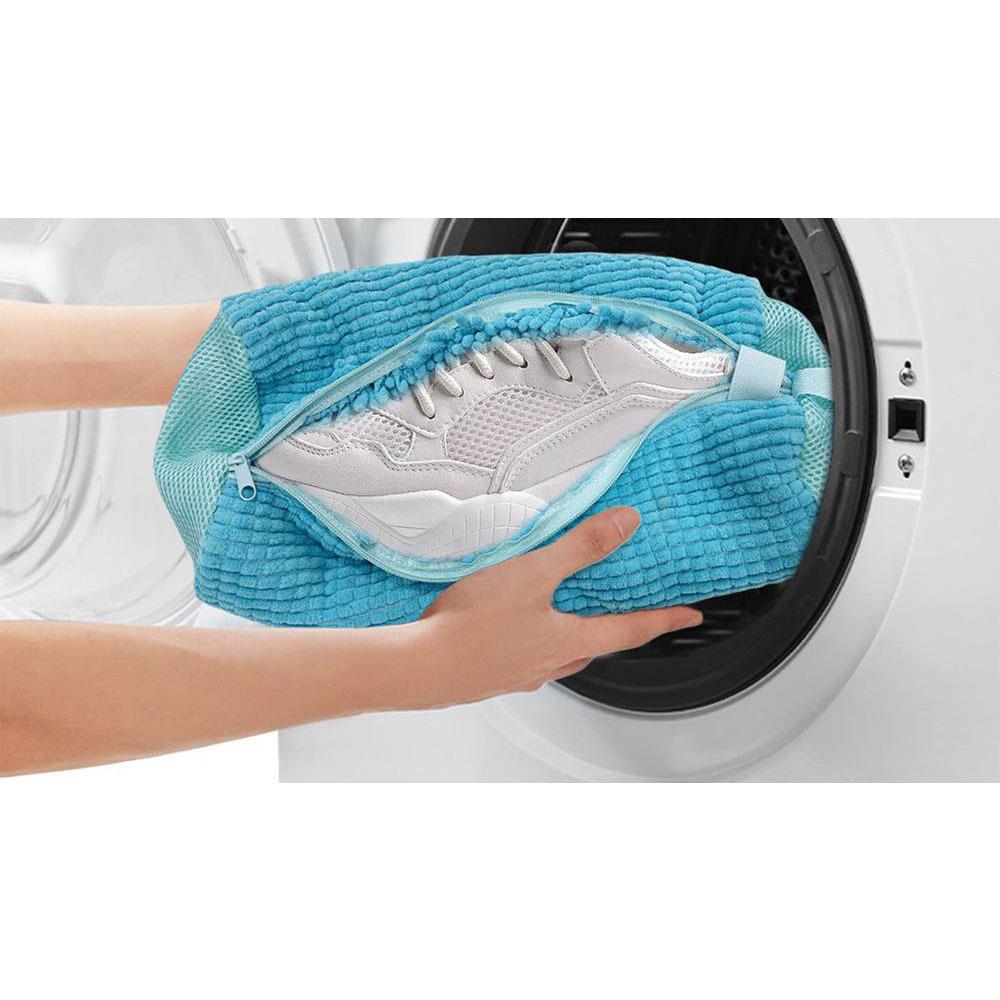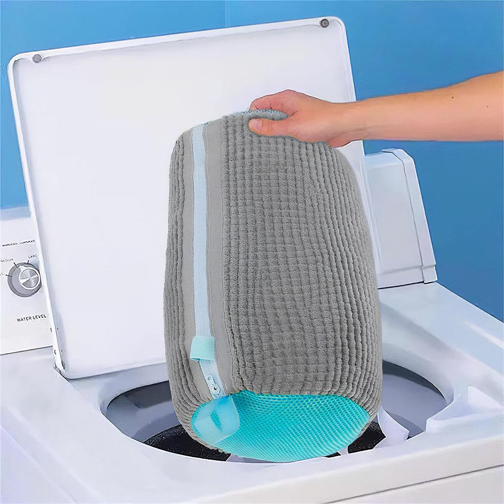 Sáček na praní bot je praktická pomůcka, díky které můžete prát obuv v pračce bezpečněji a šetrněji. Boty se v bubnu nekutálí „na volno“, zbytečně nebouchají a méně se odírají – a zároveň chráníte i samotnou pračku před otluky.