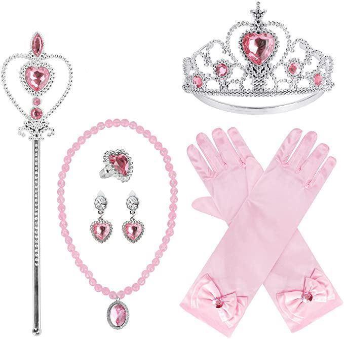 hezké barvy. Náušničky na klip, náhrdelník na gumičku. Rukavičky trochu větší, ale do toho dorosteme. Čelenka i žezlo se krásně třpytí