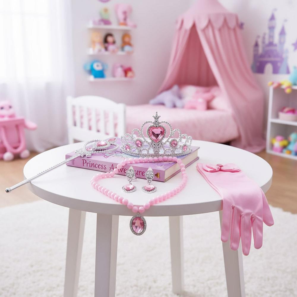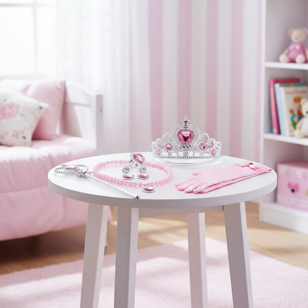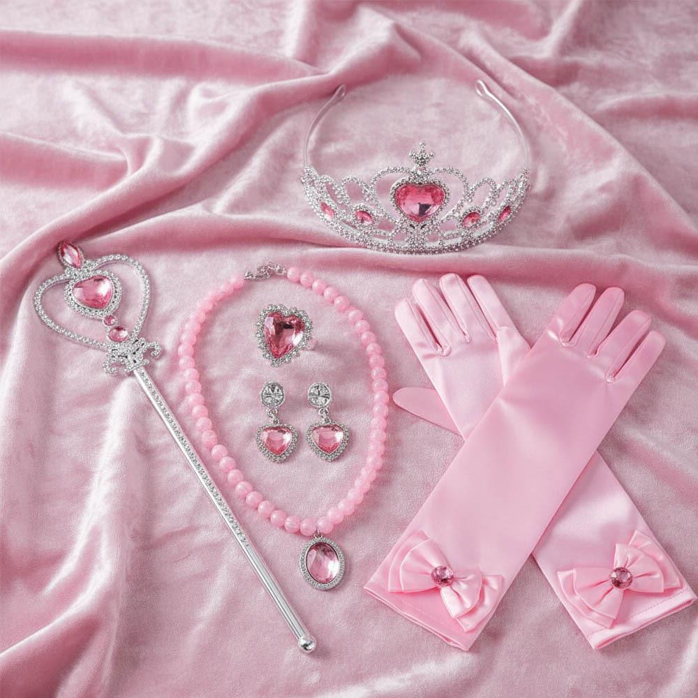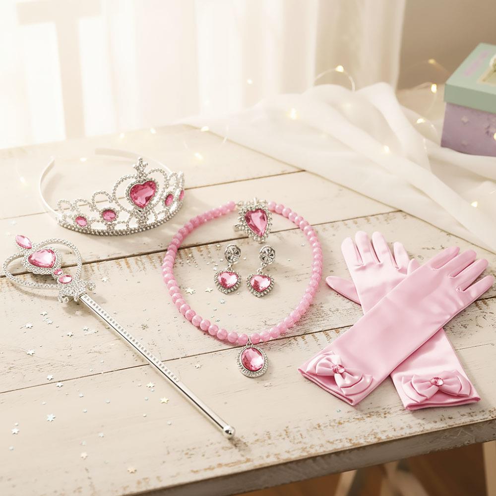 K tomu jak se stát opravdovou princeznou potřebujete tuto princeznovskou sadu, kde najdete veškeré důležité princeznovské věci. Sada obsahuje šperky jako jsou prstýnek, náušnice a náhrdelník. Dále je v sadě pár příjemný rukavic. A to nejdůležitější? Kouzelná hůlka a nádherná princeznovská čelenka. Celá sada je krásně sladěná do modré barvy. Šperky jsou ozdobeny plastovými drahokamy, které budou na děti působit jako by byly pravé. S touto sadou se vaše holčičky promění v kouzelné princezny nebo víly.