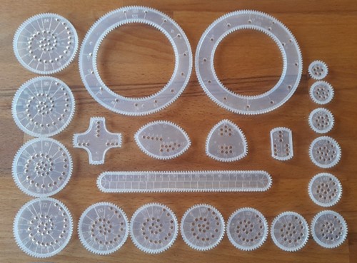 Sada kreslících šablon – spirograf je relaxační a kreativní tvoření pro malé i velké ručky. Hračku využijete pro společně strávený čas s dětmi. Tato aktivita totiž nadchne dospělé i děti. Je uklidňující, jelikož si ulevíte od starostí a přemýšlení, ale i nápaditá, jelikož můžete vytvářet nespočet obrazců a tvarů. Při této činnosti se můžete náramně kreativně vyřádit! V balení je 22 šablon o různých velikostech. Díky těmto šablonám vytváříte nepřeberné množství obrázků. Při tvoření obrázku a použití šablony lze využít i více barev. Docílíte tak pěkného duhového efektu. Při kreslení doporučujeme kreslit tenkými fixami, aby obrázek hezky vynikl. Spirograf je zkrátka zábava, která frčela, frčí a frčet bude!