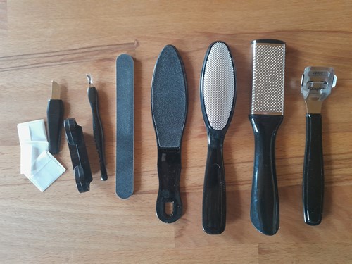 Celá sada na pedikúru v malé krabičce. Vhodné na doma i na cesty.