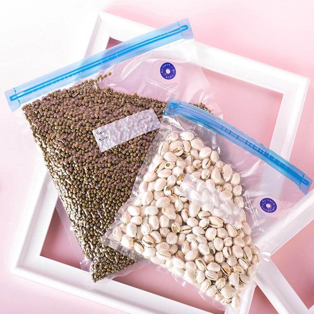 Jídlo vydrží déle čerstvé, šťavnaté a nebude okorávat. Díky sáčkům taky ušetříte spoustu prostoru. Můžete je naplnit i sypkými potravinami, to už je jen na vás. Pytlíčky lze popsat fixou a tak si v lednici nebo mrazáku udržíte pořádek.