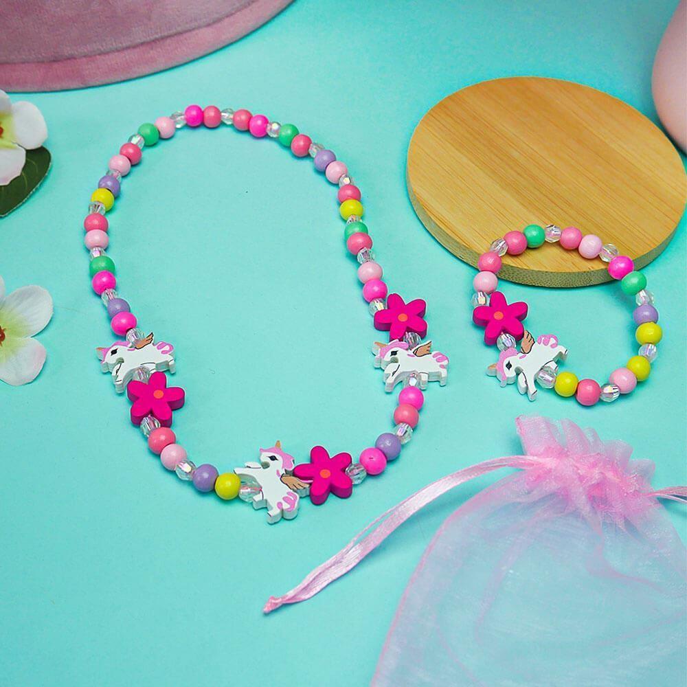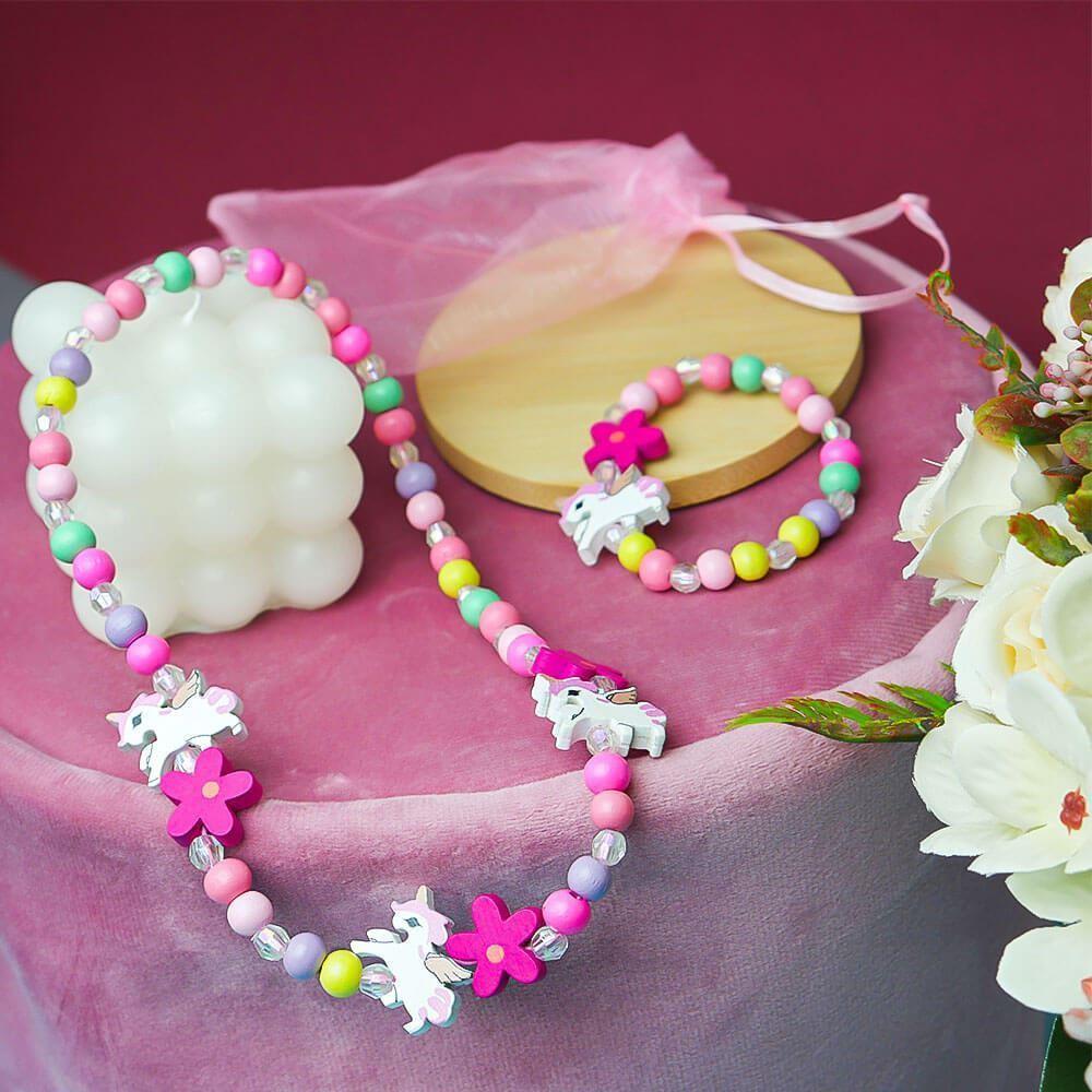 Sada náhrdelníku a náramku z dřevěných barevných korálků je skvělým dárkem pro malé parádnice. Dřevěné korálky v různých barvách dodávají těmto šperkům jedinečný a hravý vzhled, který osvěží každý outfit. Korálky jsou přírodní a šetrné k pokožce, takže jsou ideálním doplňkem pro každodenní nošení.