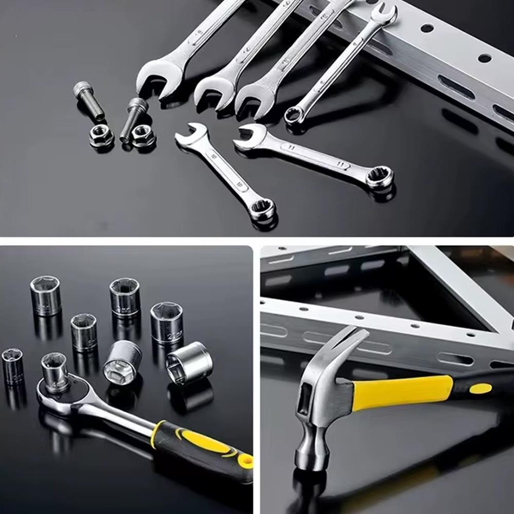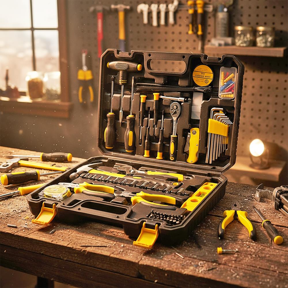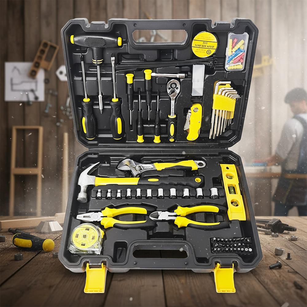 Tahle univerzální sada nářadí je snem každého muže, který chce mít všechno po ruce, kdykoli je potřeba něco utáhnout, přivrtat, opravit nebo sestavit. Pevný kufr ukrývá desítky praktických nástrojů uspořádaných přehledně tak, aby práce byla rychlá a efektivní. Od šroubováků a kleští, přes ráčnu s hlavicemi až po vodováhu či bateriový tester – nic tu nechybí.