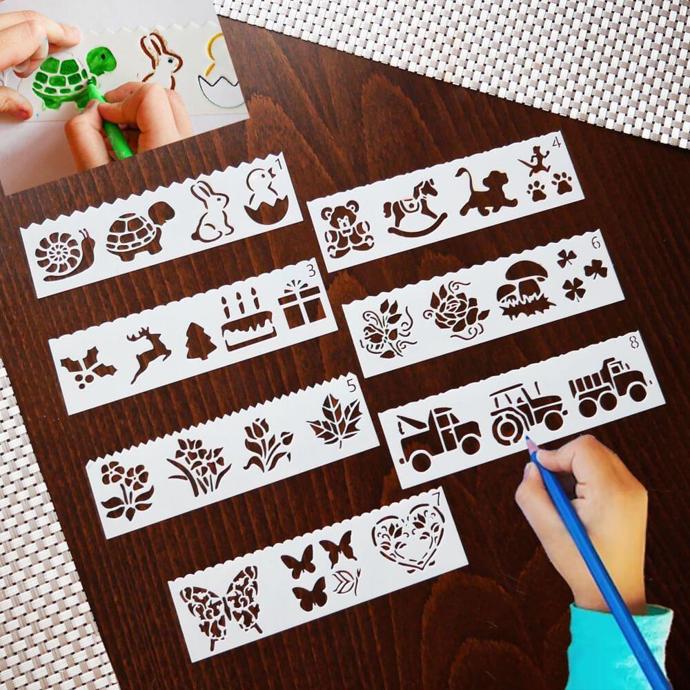 Se šablonami teď bude hračka pro dítě vytvořit bezchybný obrázek díky precizním tvarům v předloze. Stačí šablonu přiložit na papír a přejet ji štětcem s barvou, fixou, pastelkou nebo předlohu vytupovat.