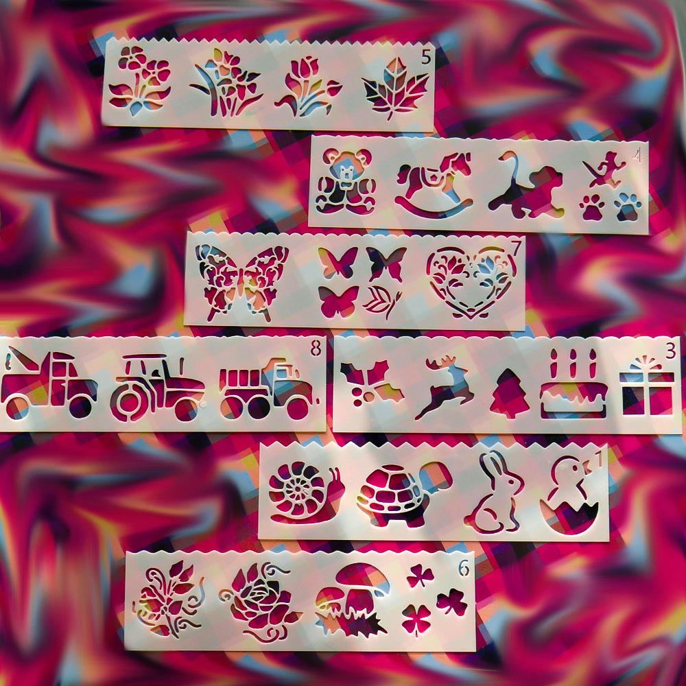 Tyto šablony zabaví vaše dítě na dlouhé hodiny. Pomůžou mu vytvořit perfektní obrázek pomocí různých vzorů. Na výběr je ze sedmi šablon, na kterých jsou znázorněny zvířátka, rostliny, motýlci a mnoho dalšího.