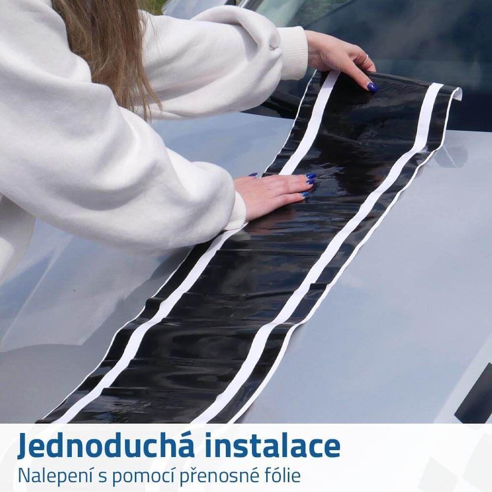 Chcete, aby vaše auto vypadalo třeba jako závodní vůz?  Možností, jak samolepkami vytvořit závodní auto, je celá řada. Jednou z nich jsou třeba tyto závodní pruhy na kapotě.