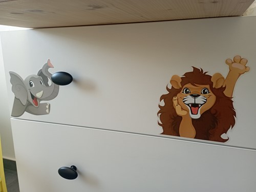 Zkrášlete dětský pokojíček příjemnými samolepkami se zvířátky. Pokud má vaše dítko rádo návštěvy zoo, tak tyto samolepky budou mít úspěch dvojnásobný. Zoo si vytvoříte u vás na zdi. Samolepky však nemusí lepit pouze na zeď, ozdobit si můžete i dveře. Nejlepšího efektu docílíte, pokud zvířátka budete lepit okolo dveří a nábytku, k vypínači či k liště podlahy. Docílíte tak efektu vykukujících zvířátek.