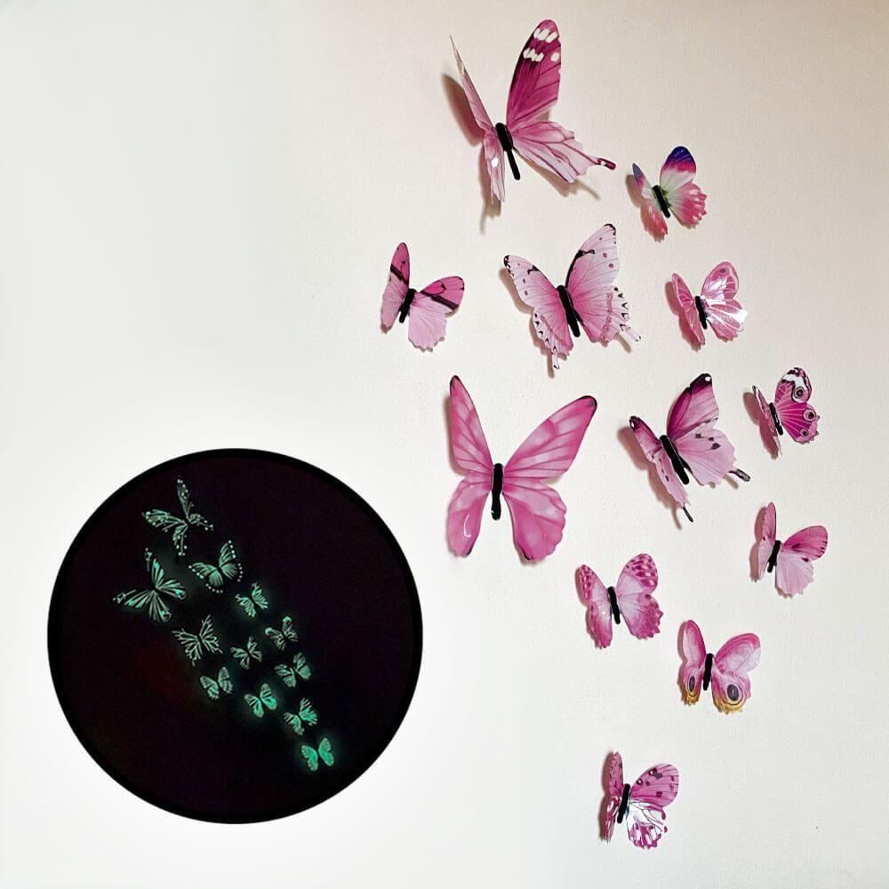 Krásní motýlci, kteří po nasvícení ve tmě září. Vnučce se moc líbí.