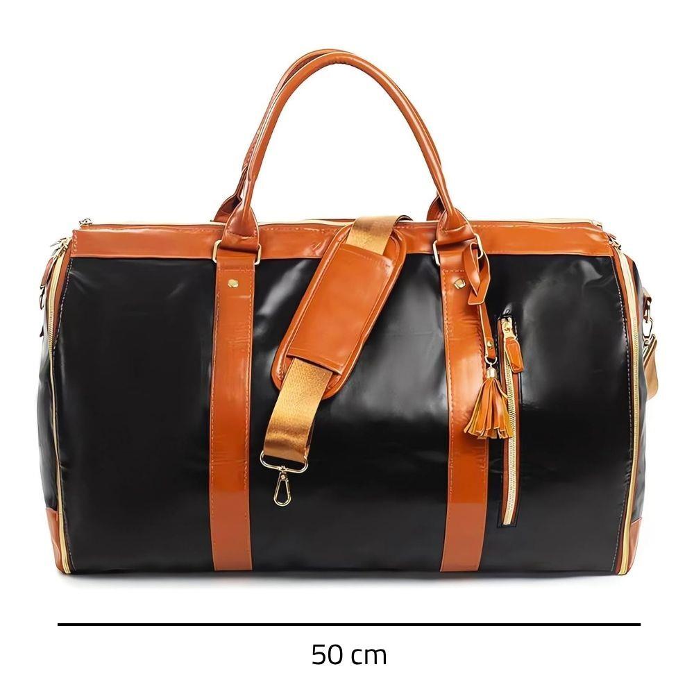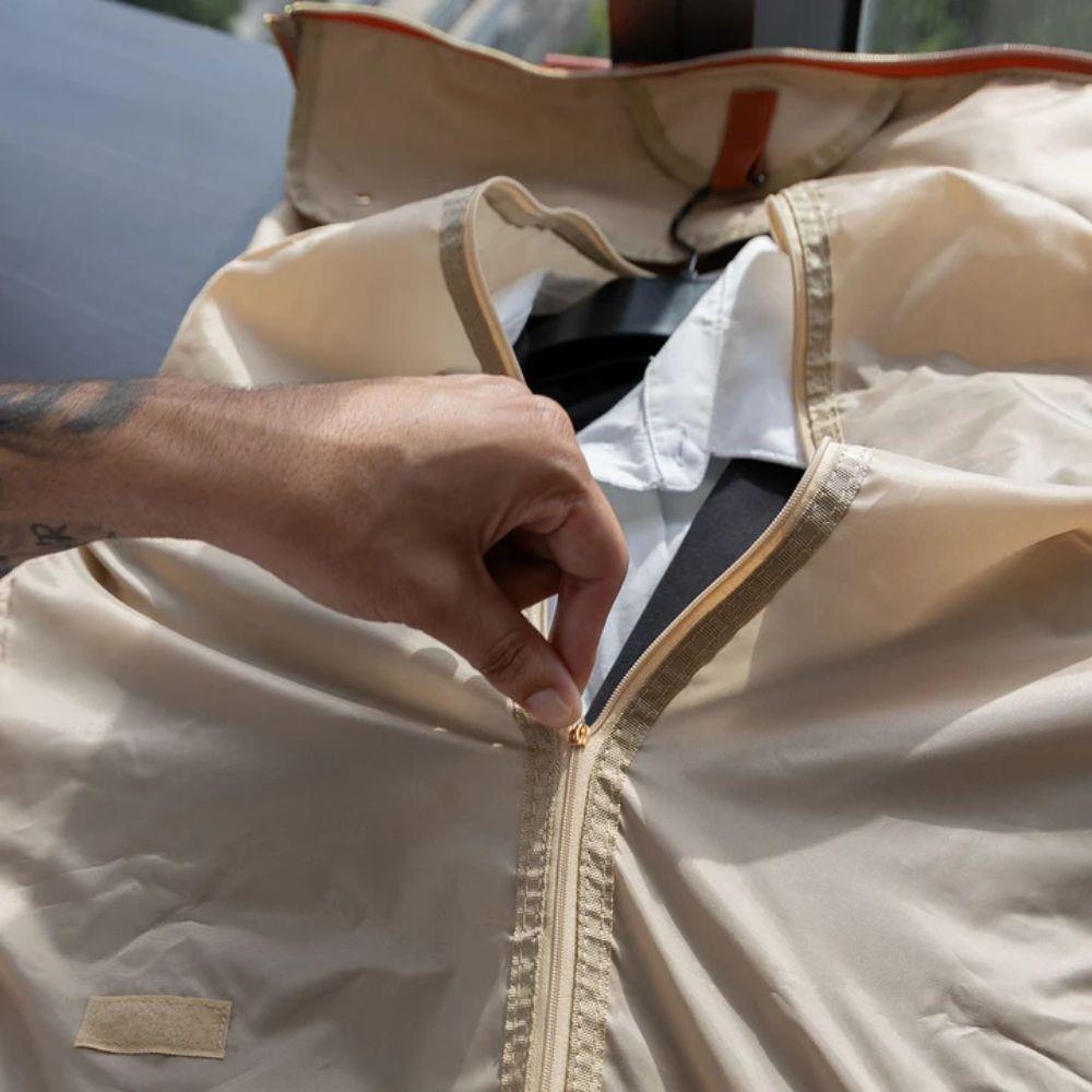 Usnadněte si balení i cestování s touto praktickou skládací taškou, se kterou se vyhnete pomačkání oblečení. Díky speciálnímu vnitřnímu prostoru můžete dovnitř uložit oblečení na ramínku a vytvořit si tak vlastní praktické zavazadlo. Stačí ji složit a získáte elegantní tašku, která pojme vše potřebné. Do bočních kapes si můžete uložit doplňky, boty nebo kosmetiku.