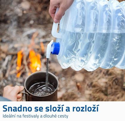 Skládací kanystr na vodu, je skvělou vychytávkou nejen na kempování či festivaly, ale i na cesty a dovolenou. Má praktický výpustný kohout, který je velmi praktický pro snadné nalití vody. Může najít využití i v domácnosti nebo dílně.